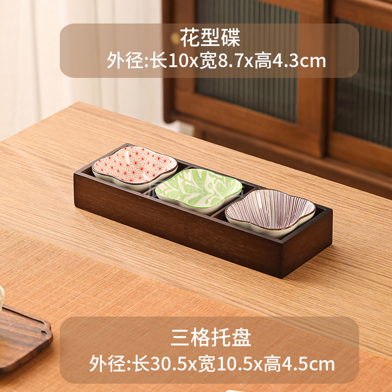 • 월넛 3각형 그리드 + 꽃 모양 접시 3개