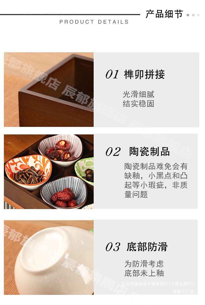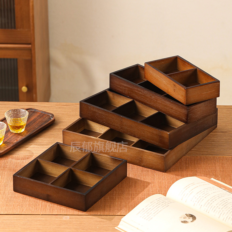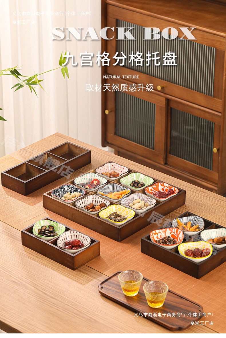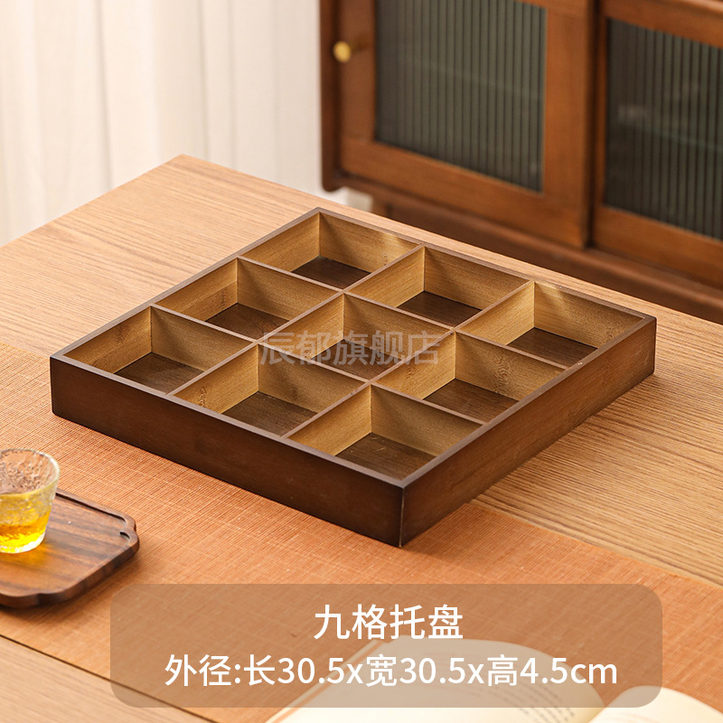 호두 컬러 Jiugongge 트레이 가정용 말린 과일 플레이트 과일 스낵 플레이트 엔서클 스토브 티 요리 스낵 트레이 파티션 트레이