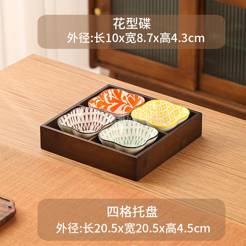 • 월넛 4각형 그리드 + 꽃 모양 접시 4개