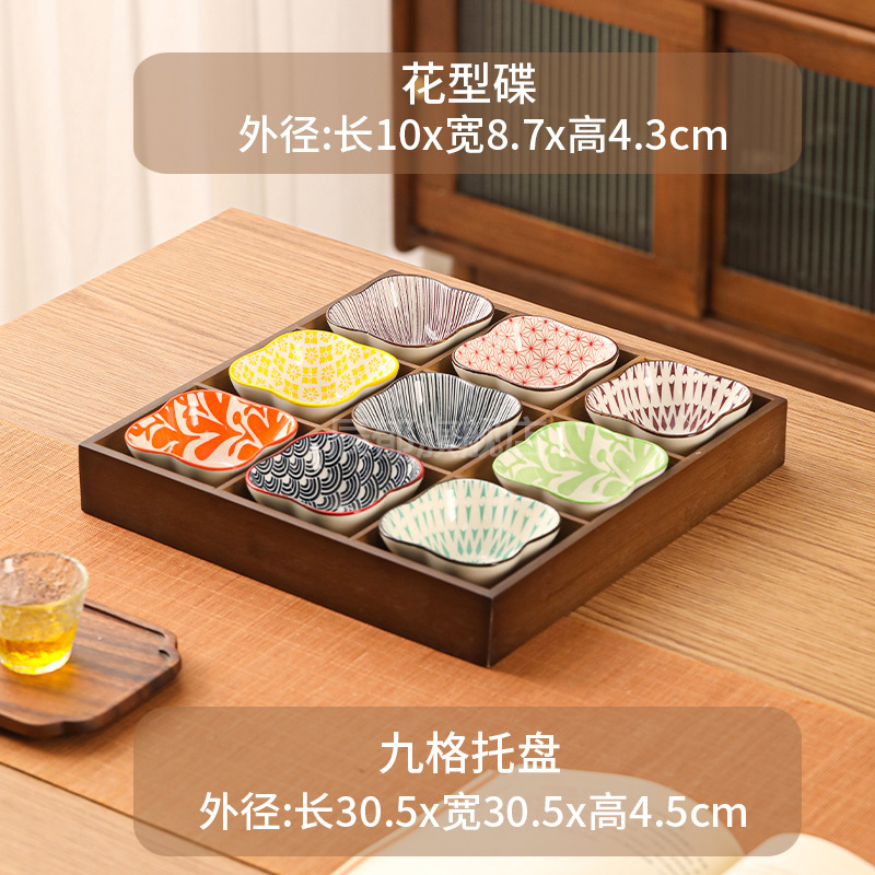 • 호두 9각형 격자 + 9가지 꽃 모양 접시 9가지 색상