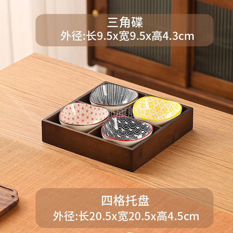 • 월넛 4각형 그리드 + 삼각형 맛 접시 4개