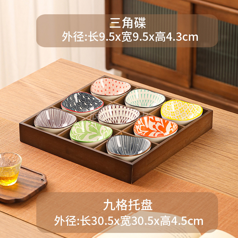 • 호두 9각형 격자 + 9개의 삼각형 맛 접시 9개, 9가지 색상