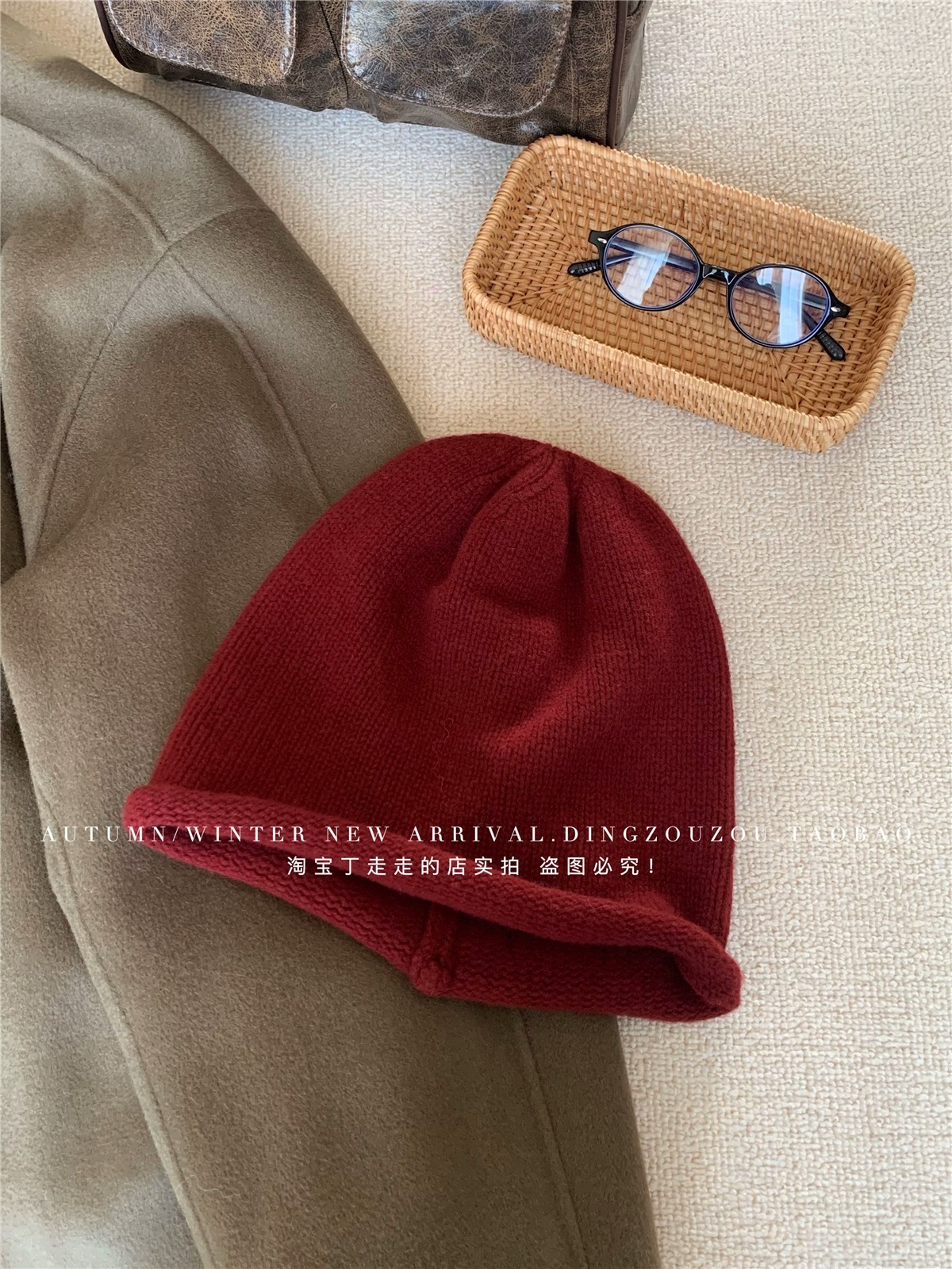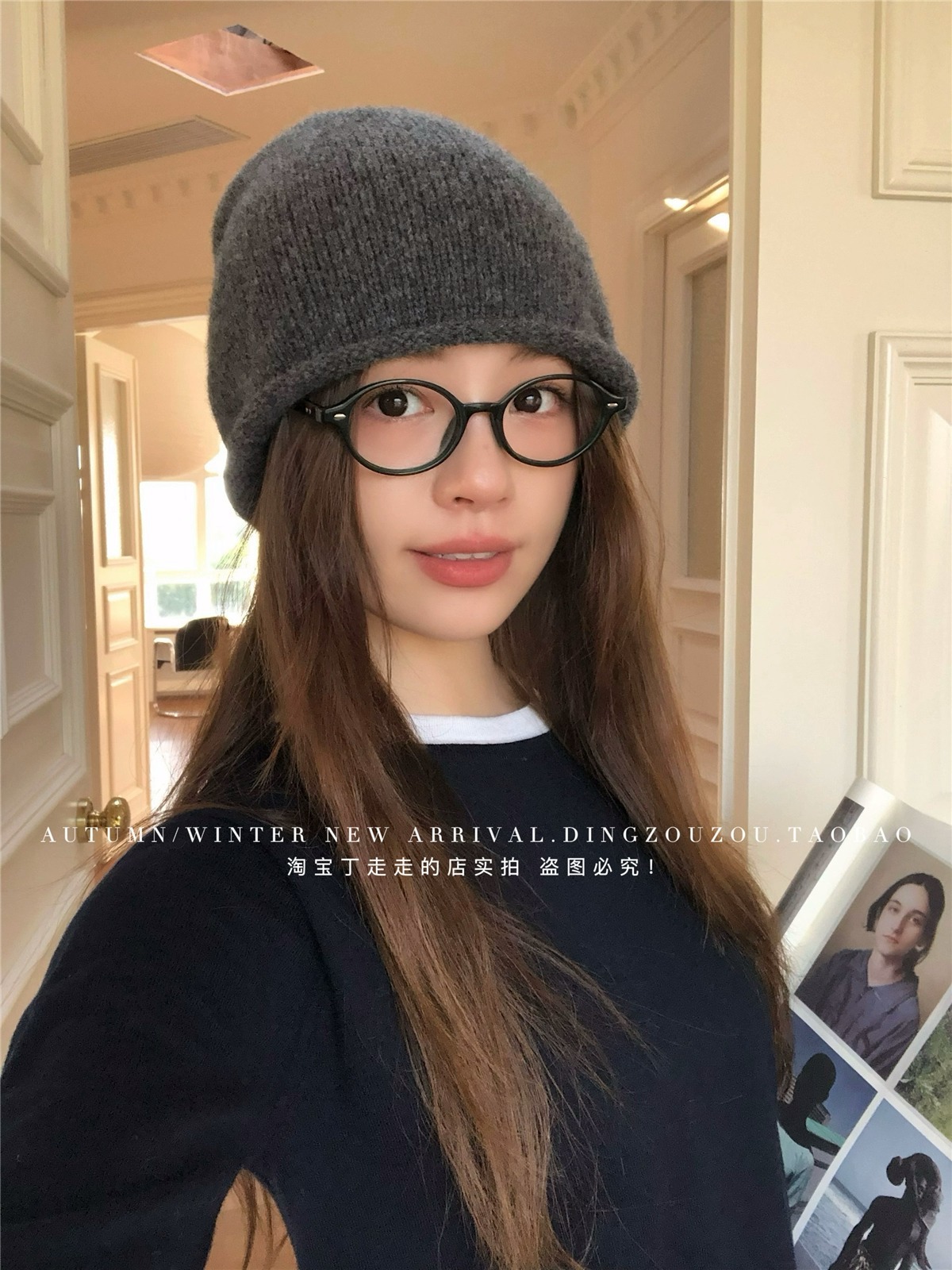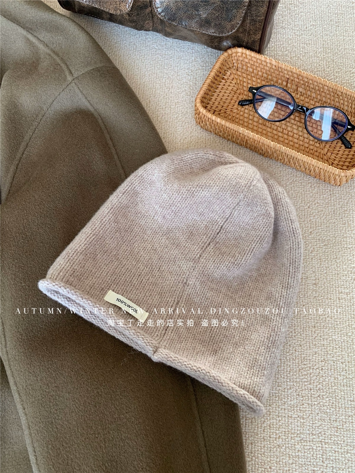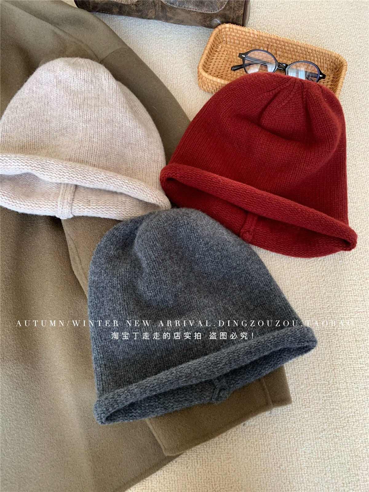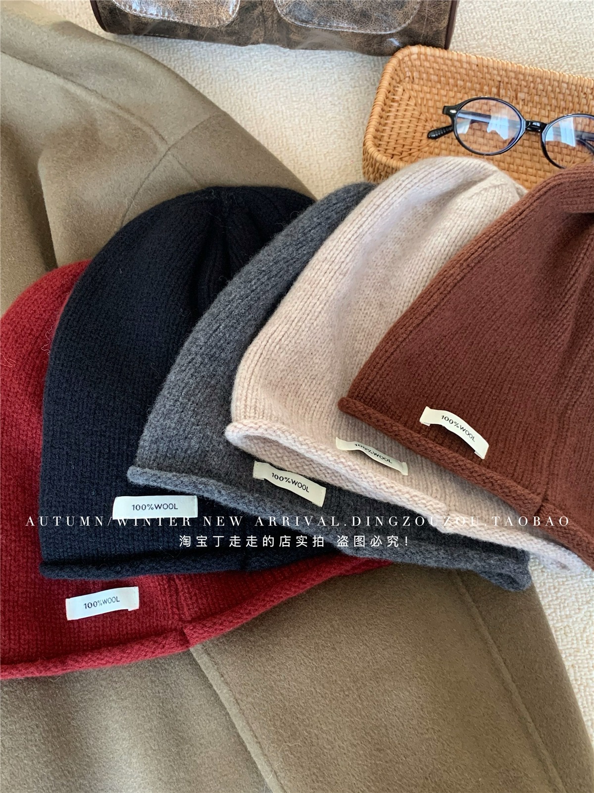 보유 돈! 100 순수 양모 니트 모자 여성의 가을과 겨울 따뜻한 회색 양모 모자 얼굴 작은 올 매치 콜드 모자스토어 가기