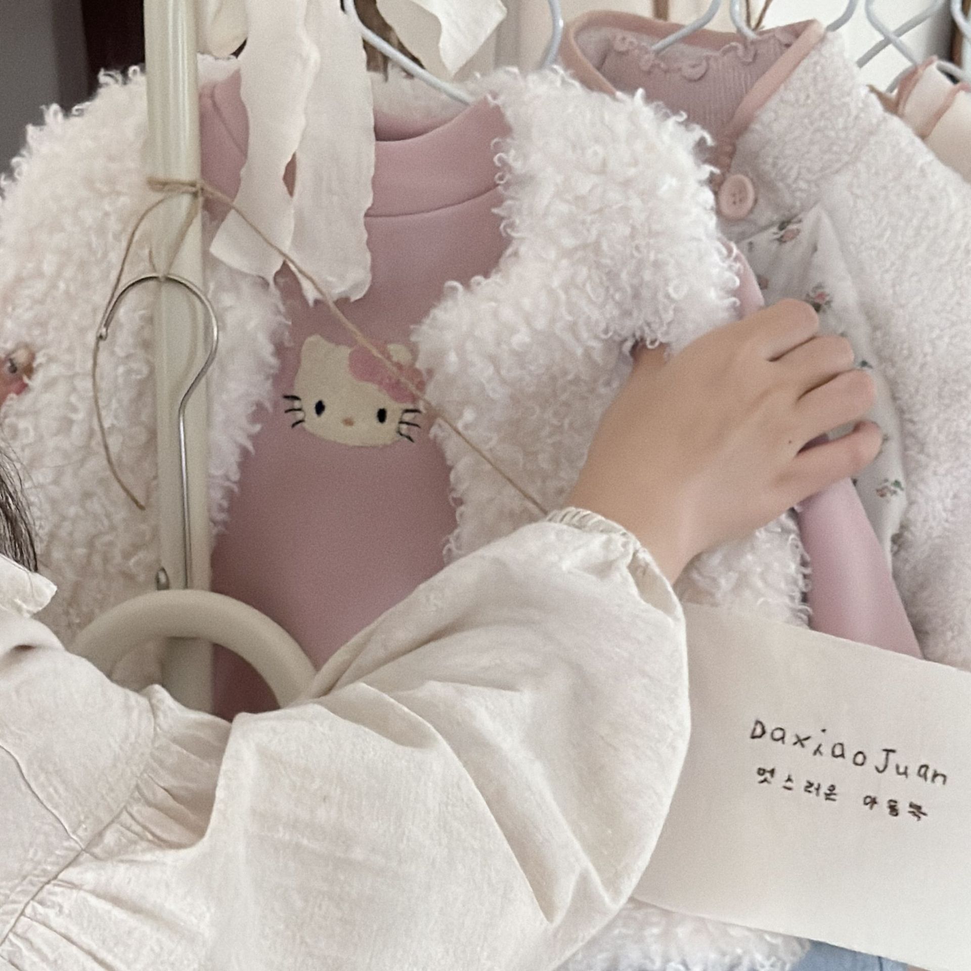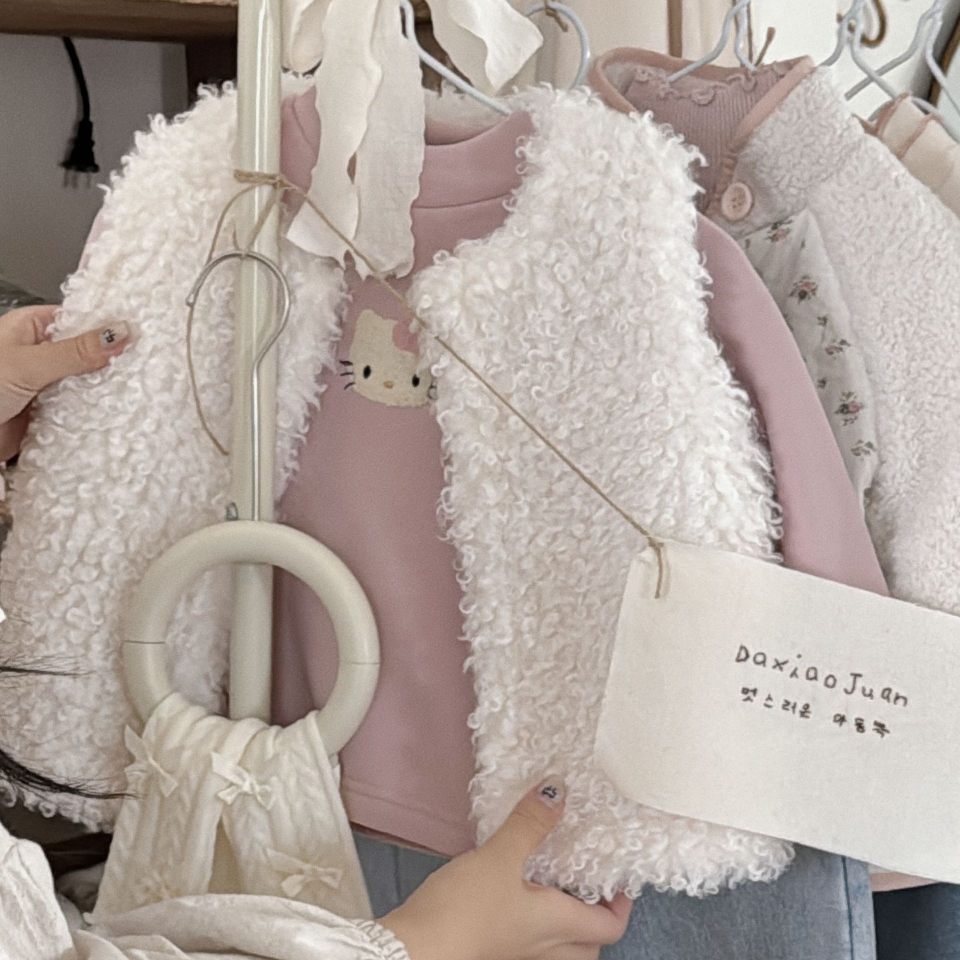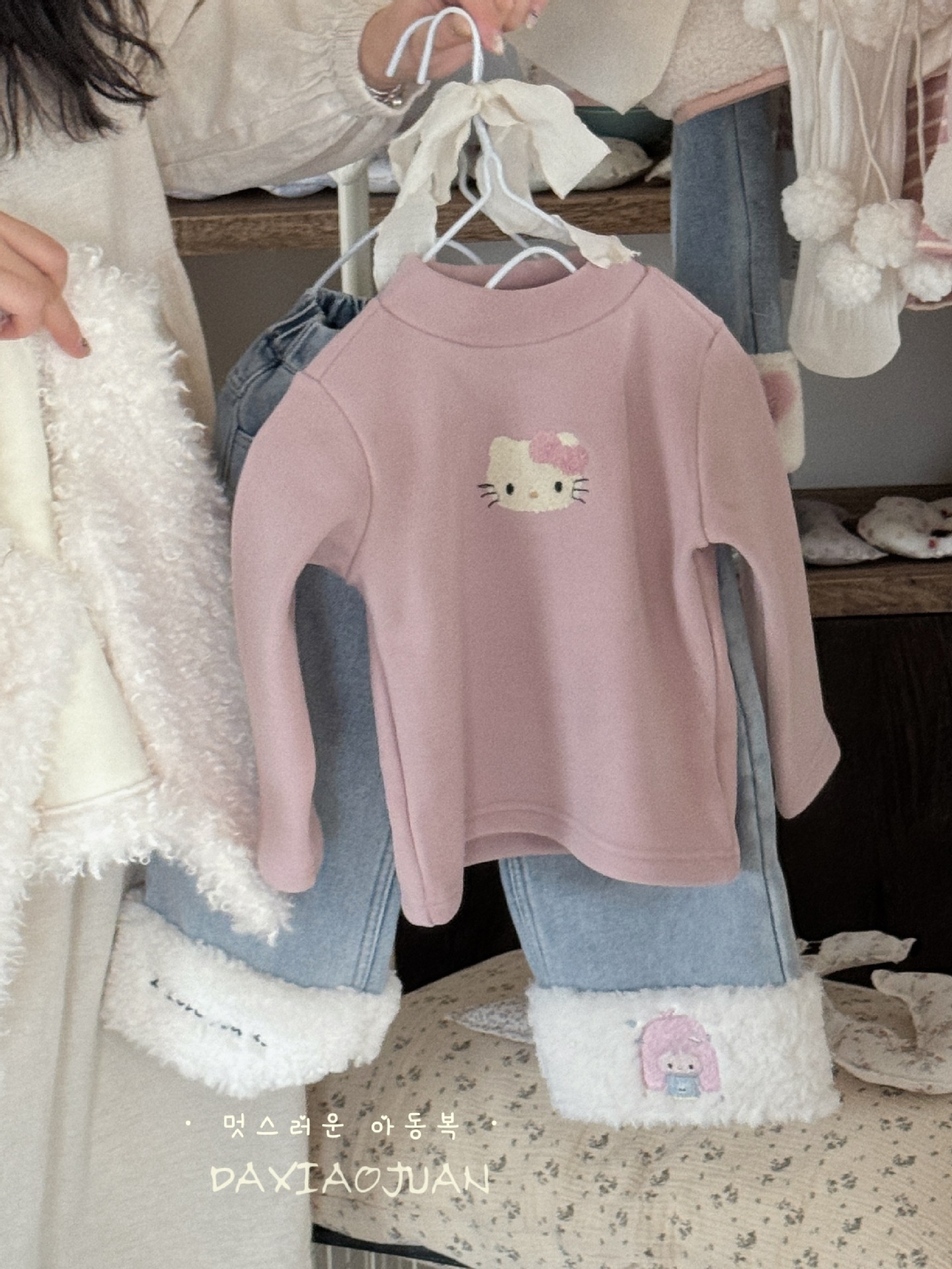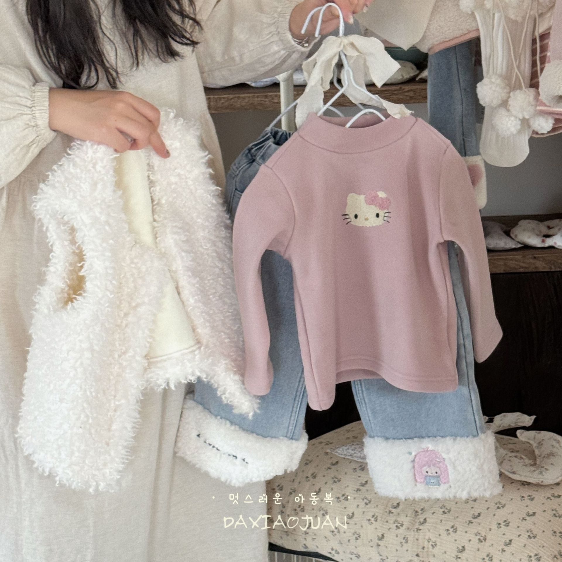 크기 롤 아기 소녀 기모 고양이 기본 셔츠 2024 가을과 겨울 새로운 어린이 겨울 코트 소녀 한국어 버전스토어 가기