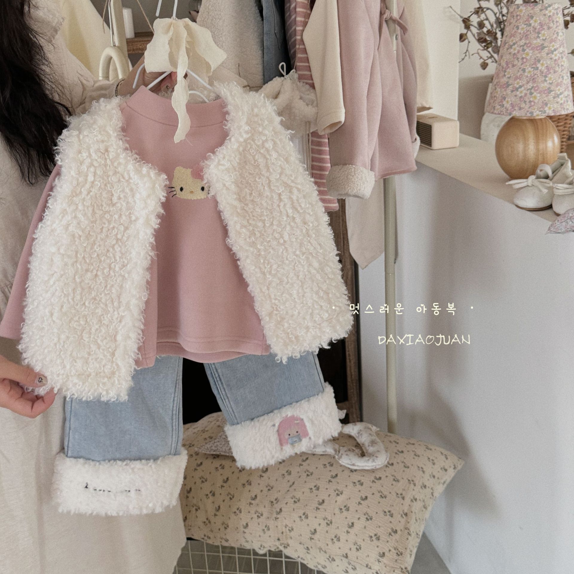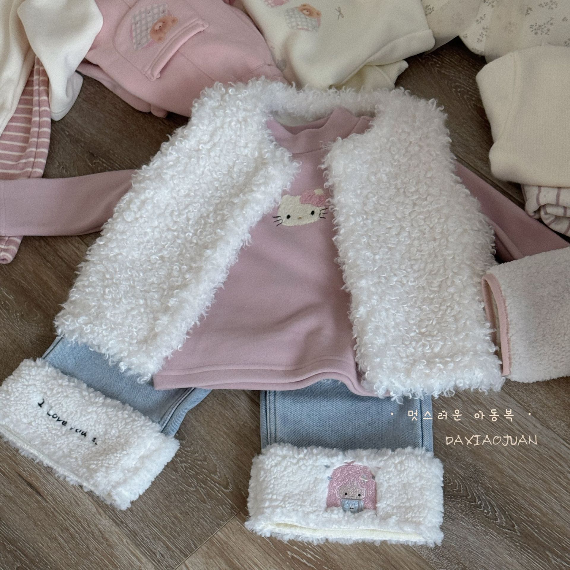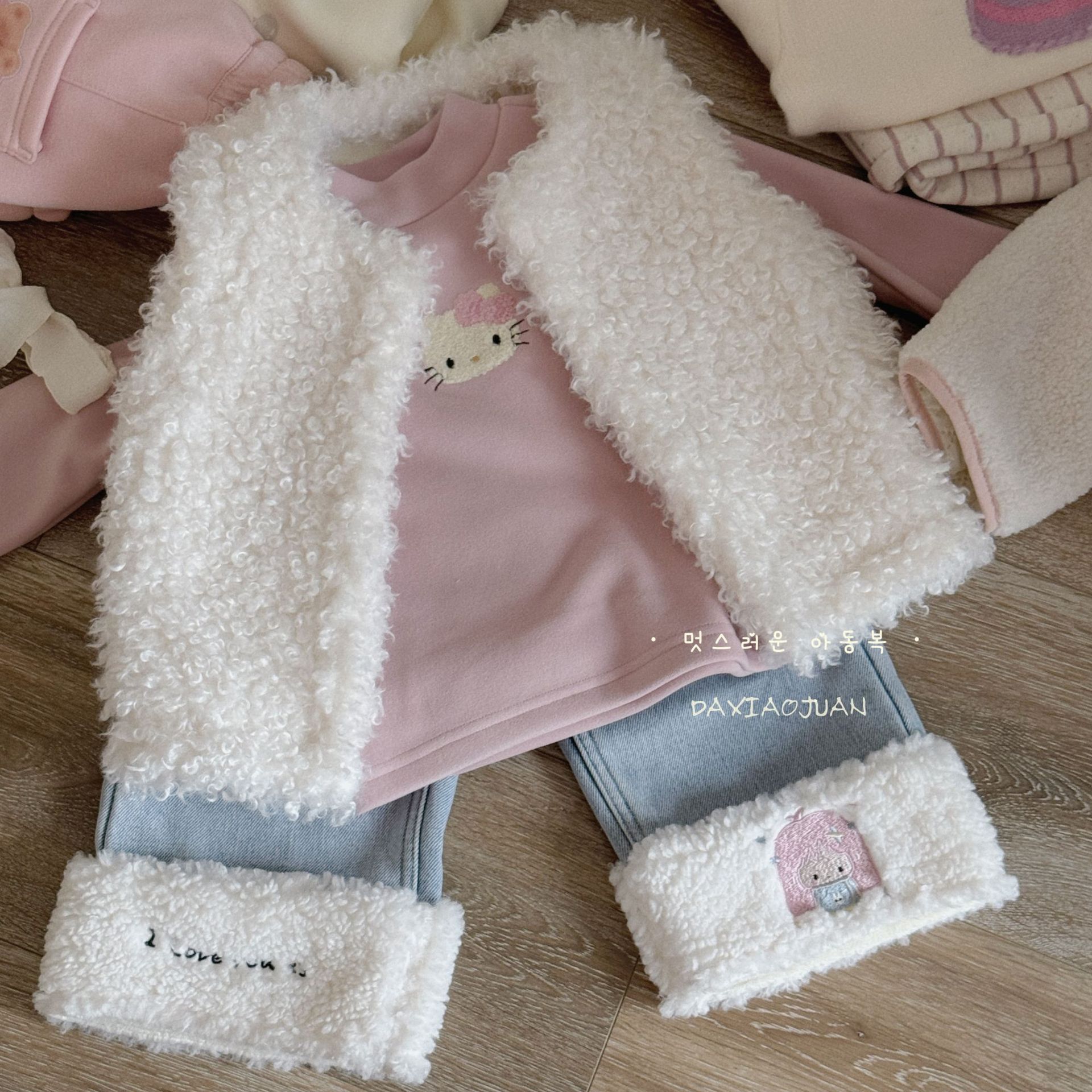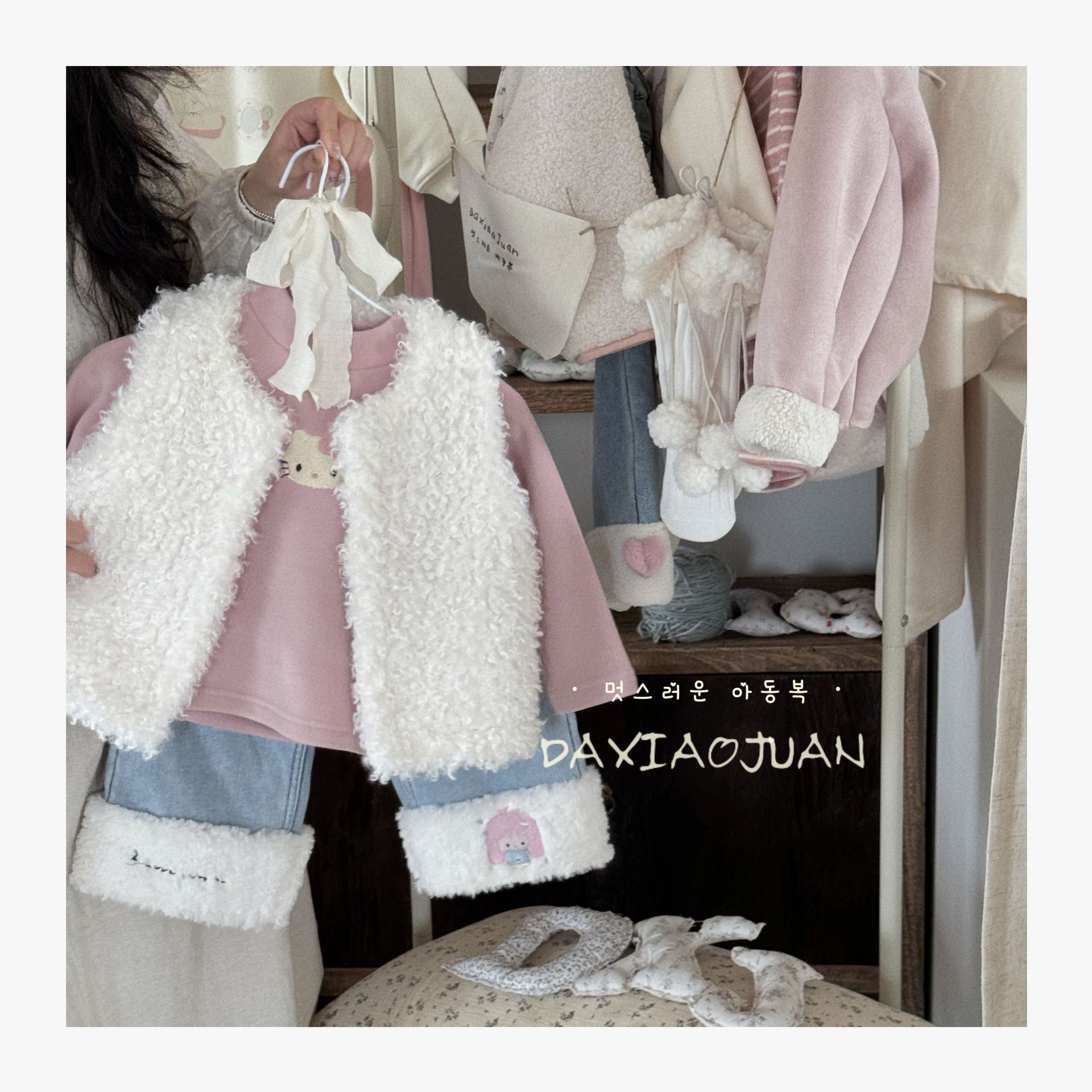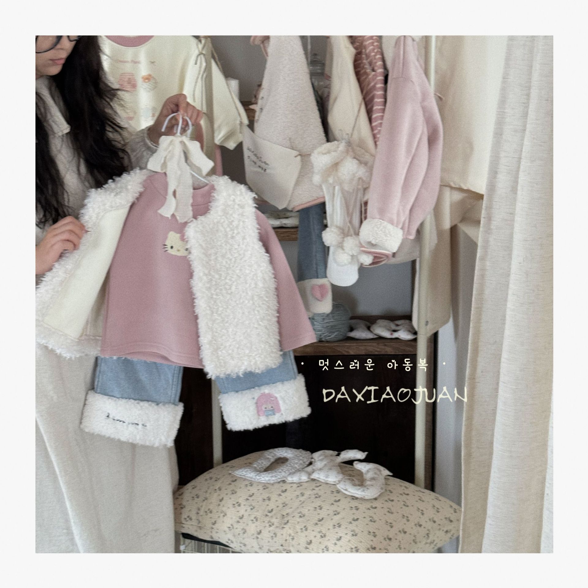 크기 롤 아기 소녀 기모 고양이 기본 셔츠 2024 가을과 겨울 새로운 어린이 겨울 코트 소녀 한국어 버전스토어 가기