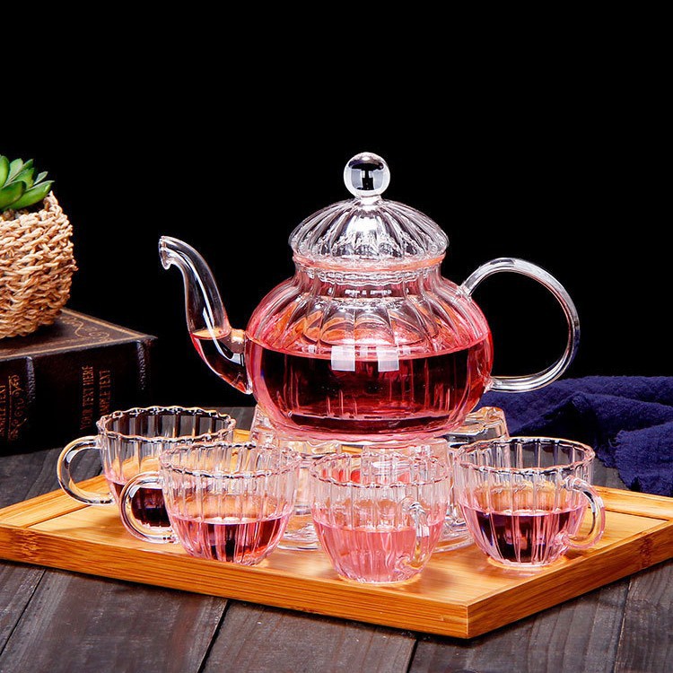 ZZMY128 높은 붕규산 유리 주전자 고온 저항하는 꽃 주전자 양초 난방 여성을위한 가정용 끓는 차 세트 차스토어 가기