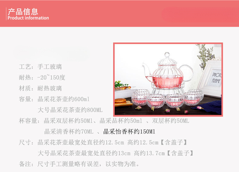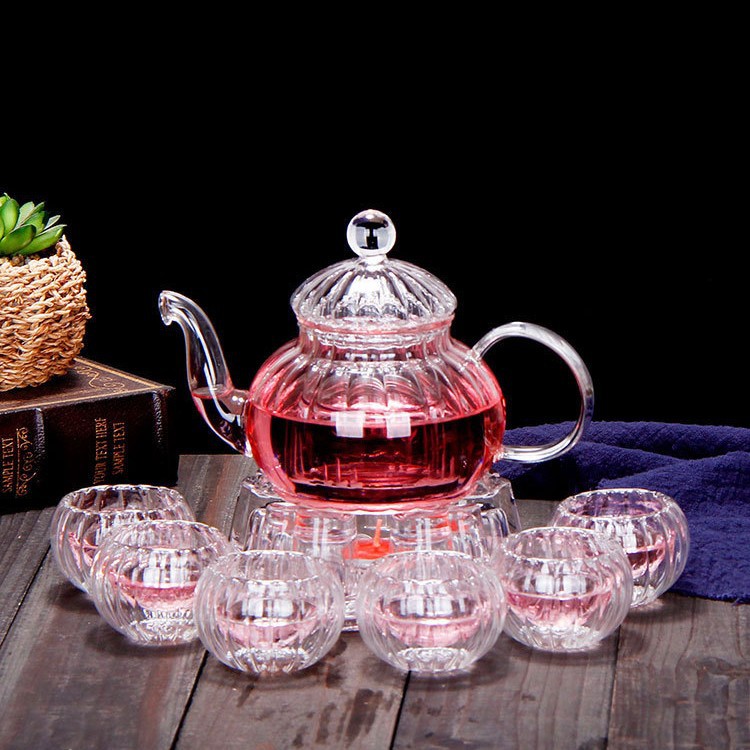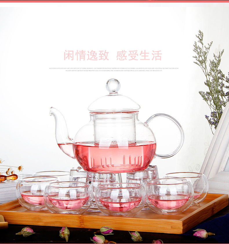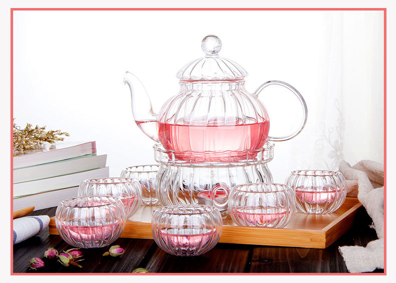 ZZMY128 높은 붕규산 유리 주전자 고온 저항하는 꽃 주전자 양초 난방 여성을위한 가정용 끓는 차 세트 차