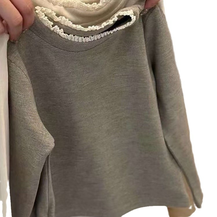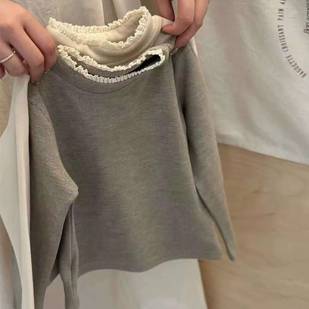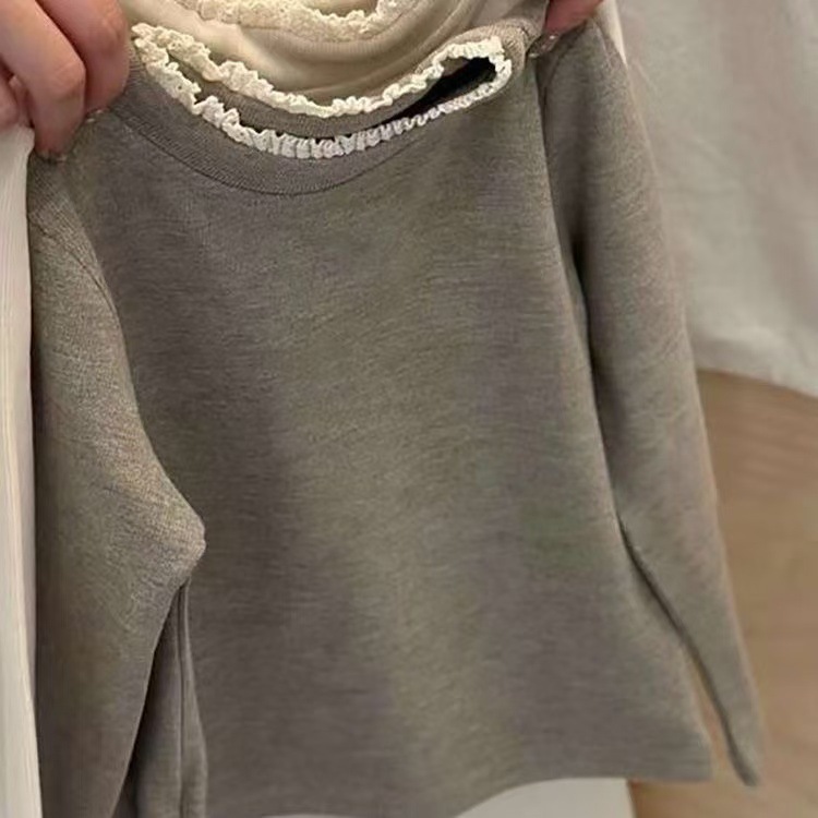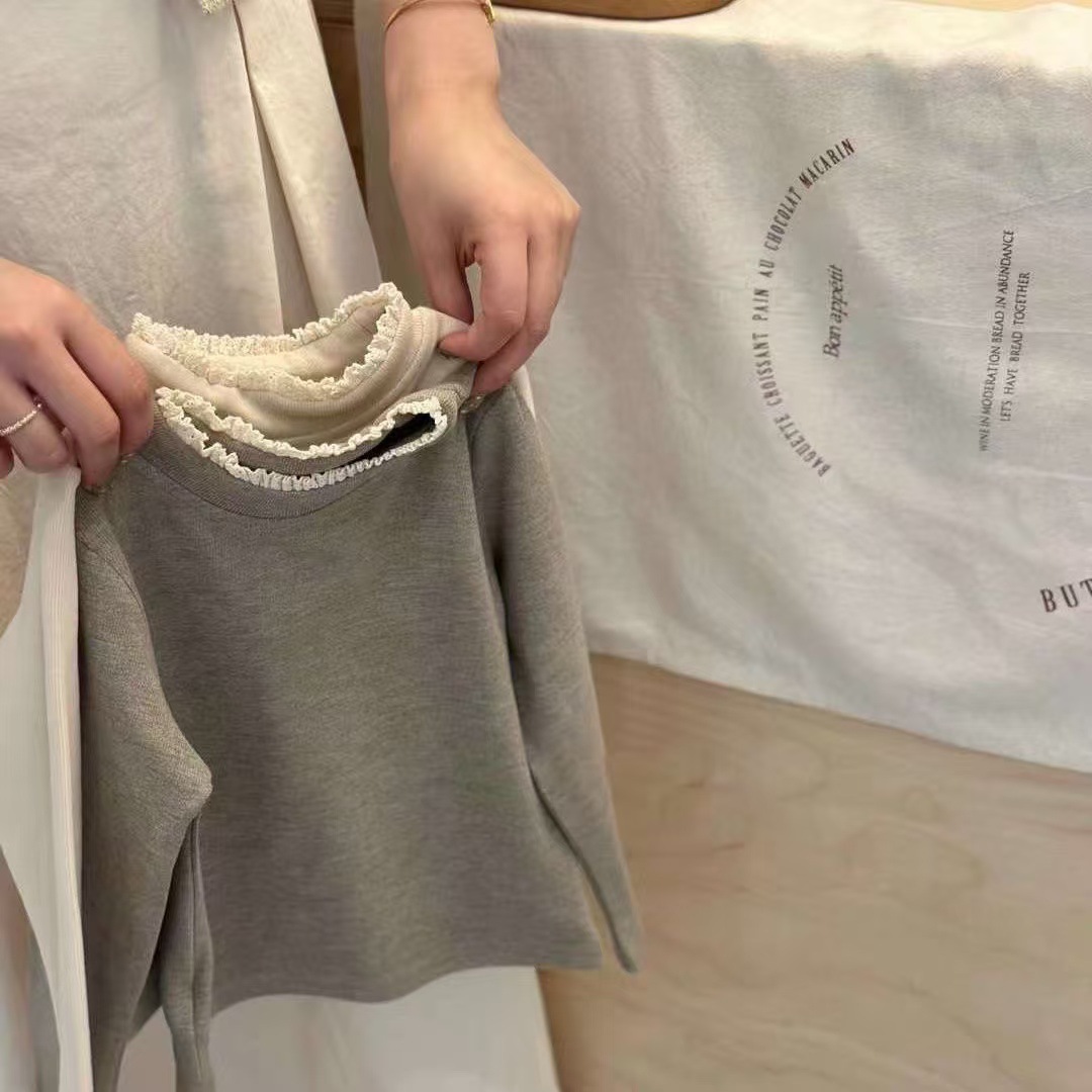 한국 아동복 소녀 바닥 셔츠 2024 봄과 가을 새로운 서양식 아기 한국 티셔츠 어린이 레이스 칼라 재킷