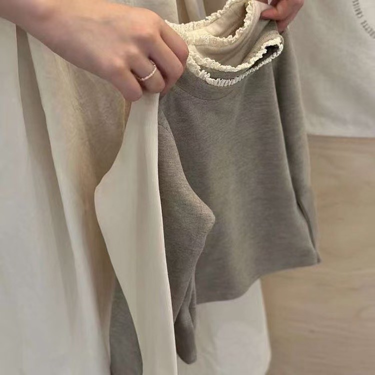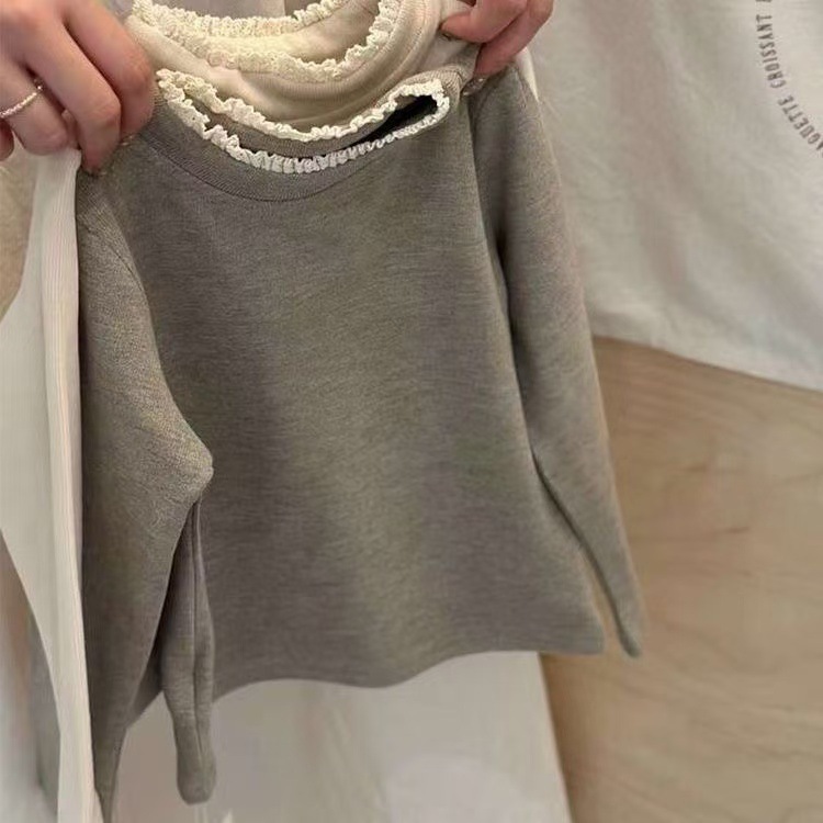 한국 아동복 소녀 바닥 셔츠 2024 봄과 가을 새로운 서양식 아기 한국 티셔츠 어린이 레이스 칼라 재킷스토어 가기
