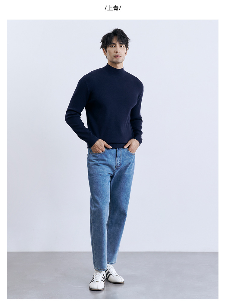 유럽 코어 스펀 원사 하프 하이 넥 스웨터 남자 터프 가이 스트레치 긴팔 스웨터 모달베이스 울 스웨터스토어 가기