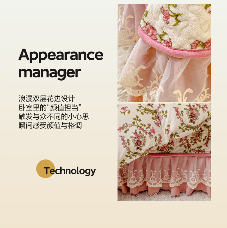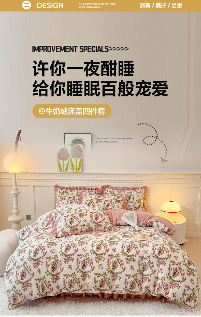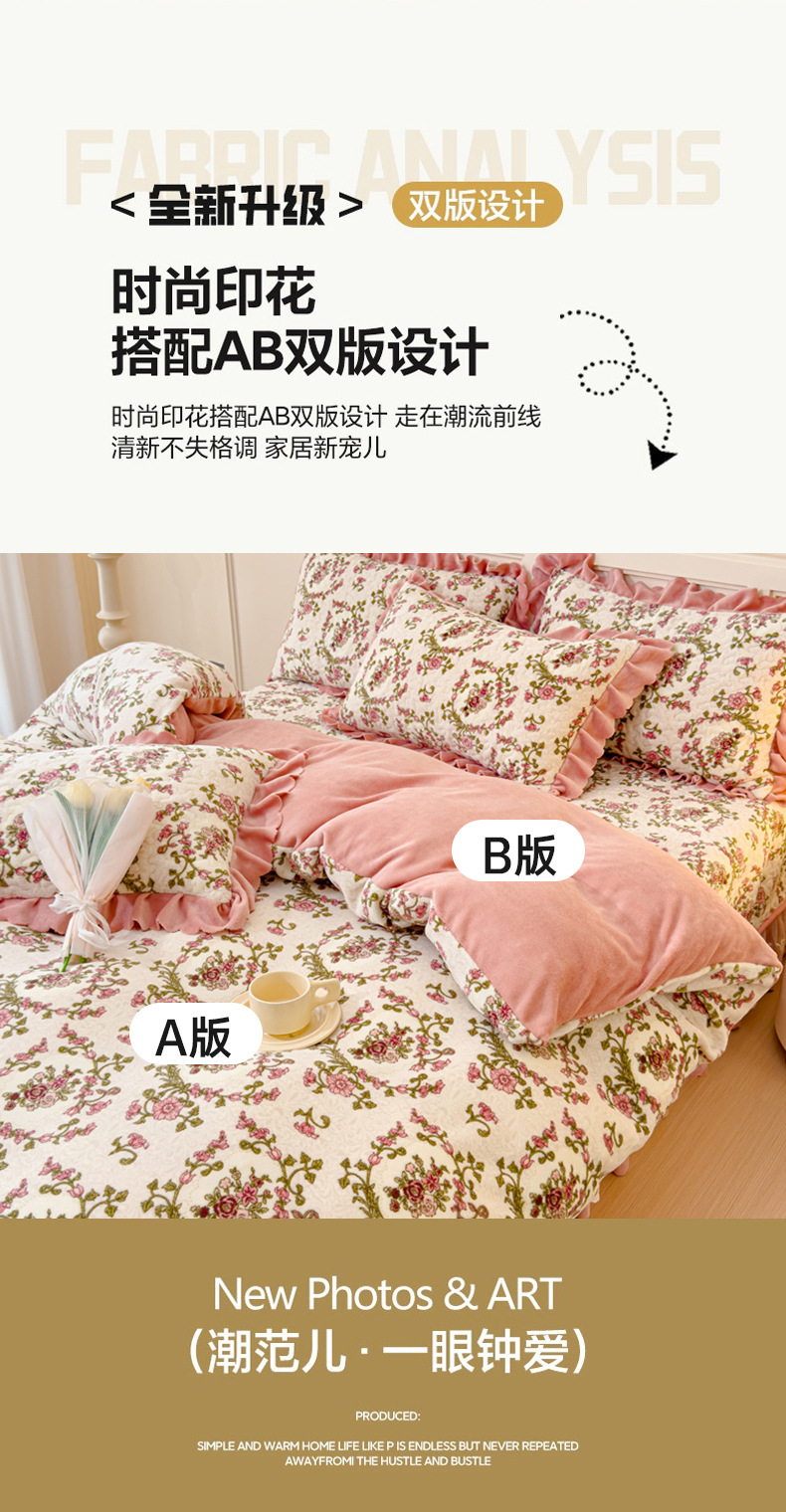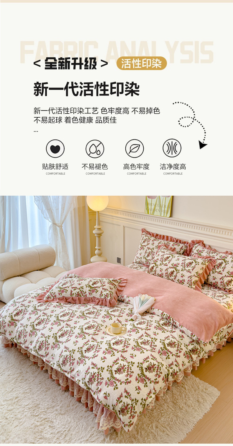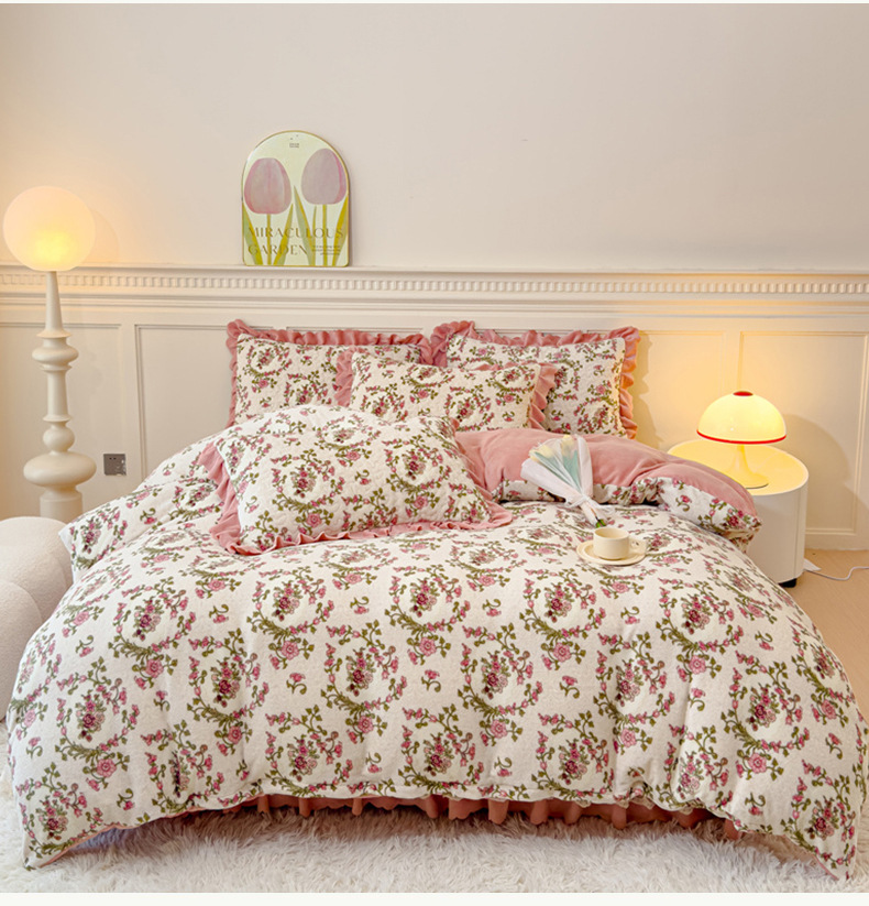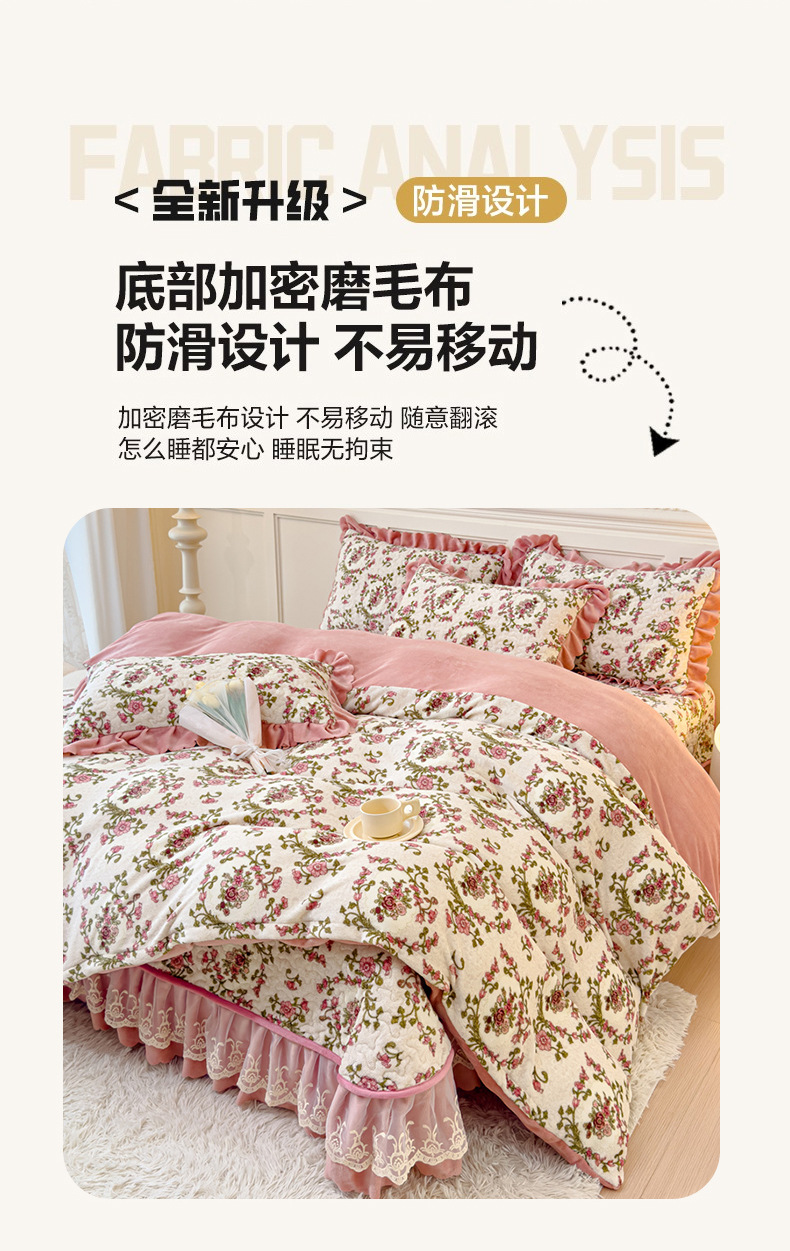 고급 두꺼운 우유 벨벳 침대 커버 4 피스 세트 작은 신선한 레이스 퀼트 커버 아기 벨벳 침대 스커트 침대 커버 공주 바람스토어 가기