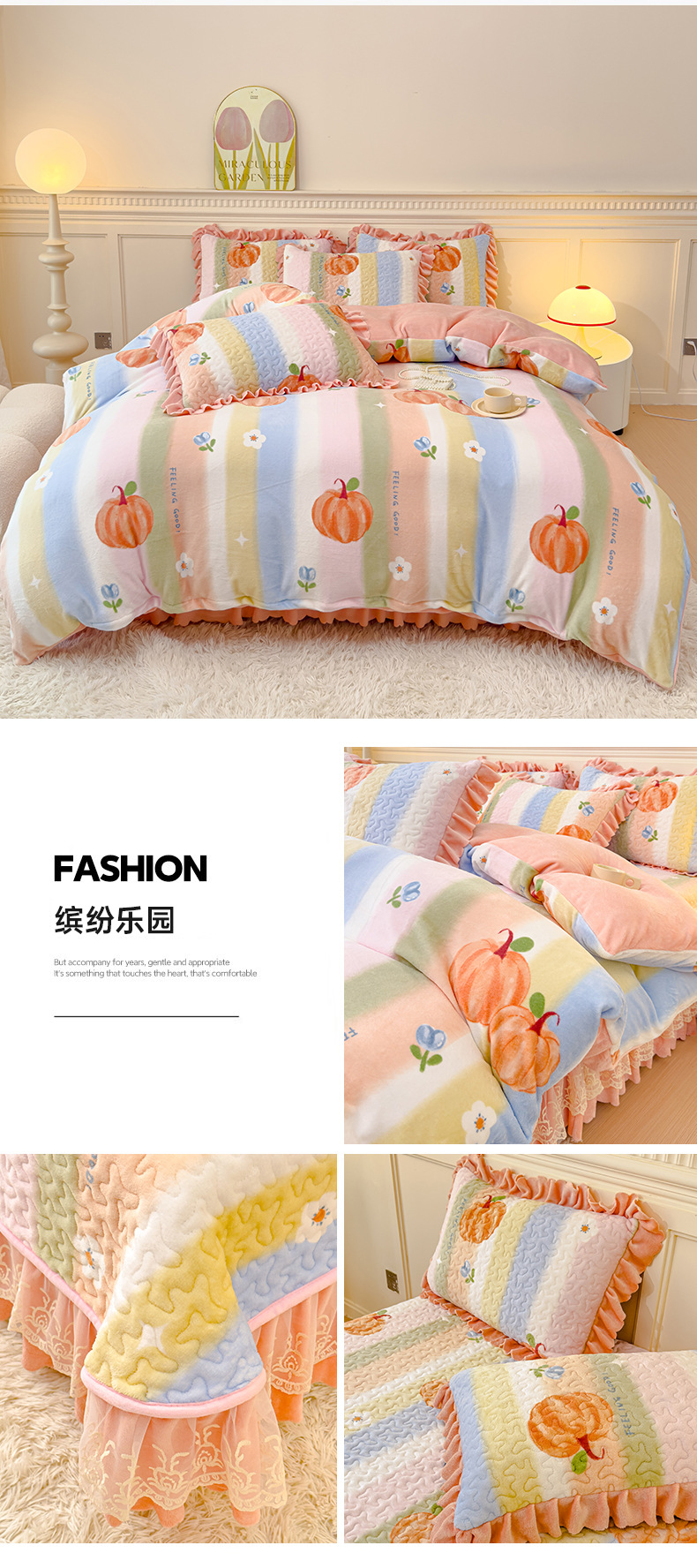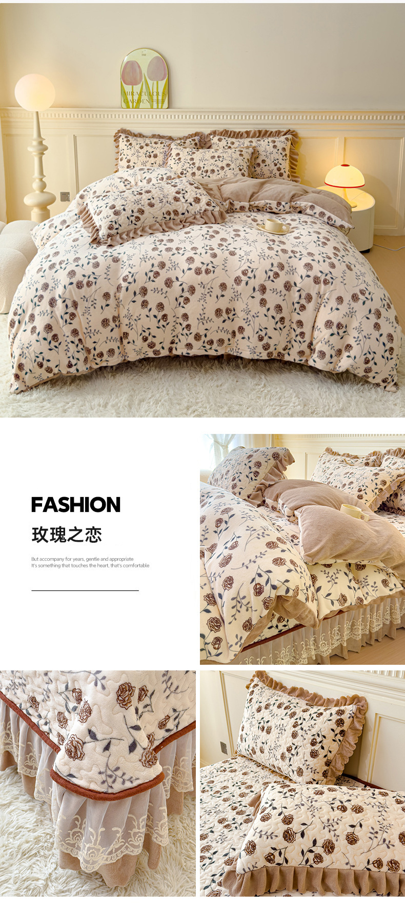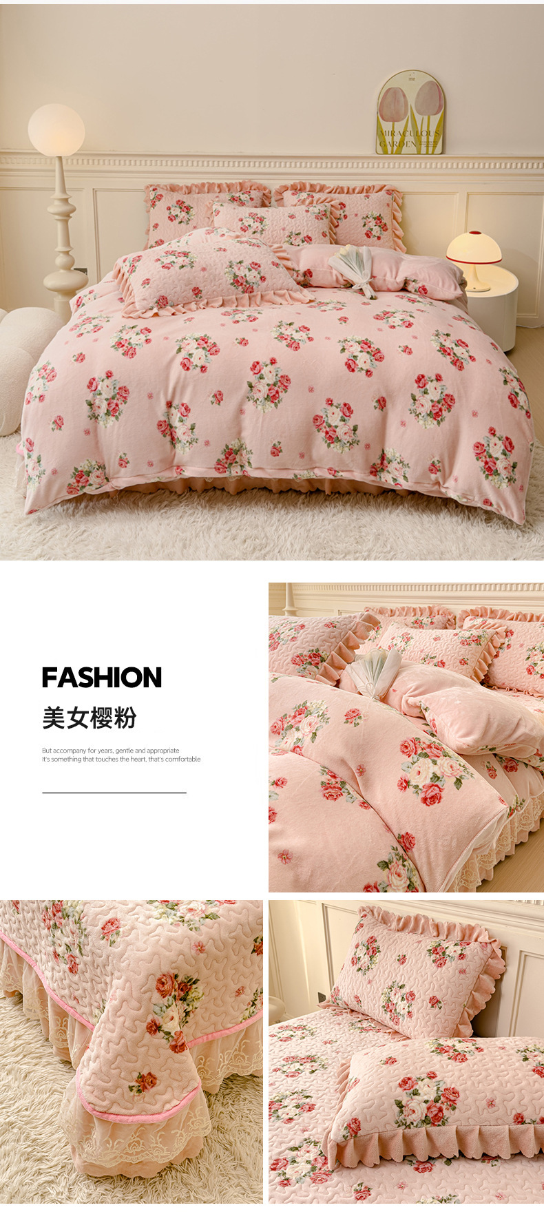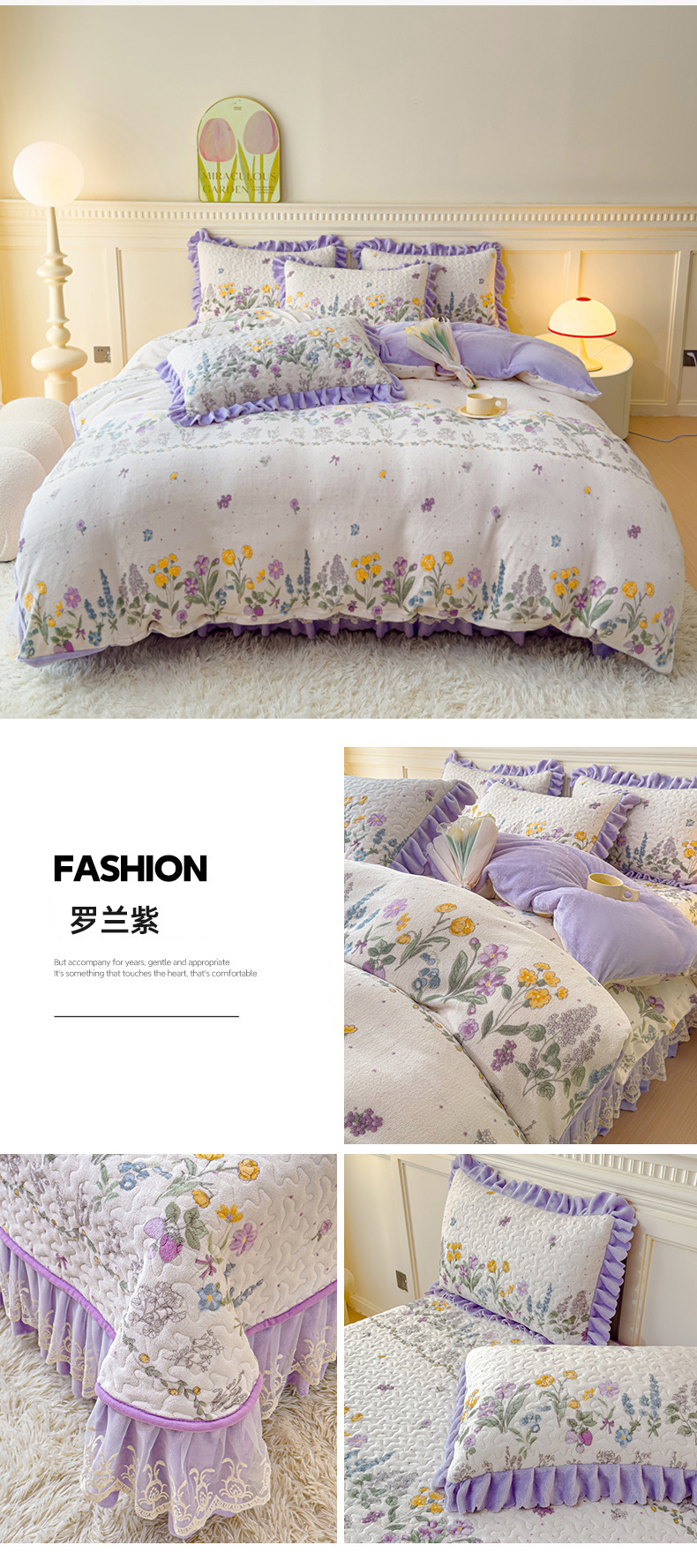 고급 두꺼운 우유 벨벳 침대 커버 4 피스 세트 작은 신선한 레이스 퀼트 커버 아기 벨벳 침대 스커트 침대 커버 공주 바람스토어 가기