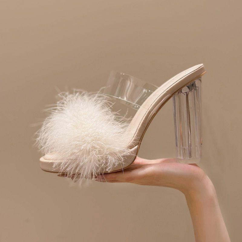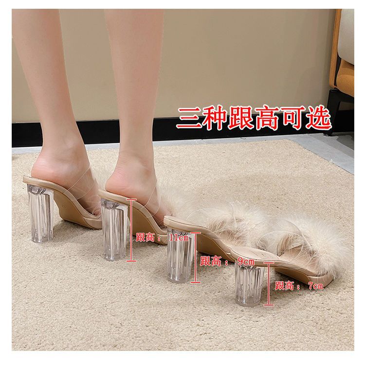 작은 피곤하지 않은 발은 투명 크리스탈 샌들을 증가 인터넷-유명한 인기있는 여성의 한 단어 드래그 2024 가을 새로운스토어 가기