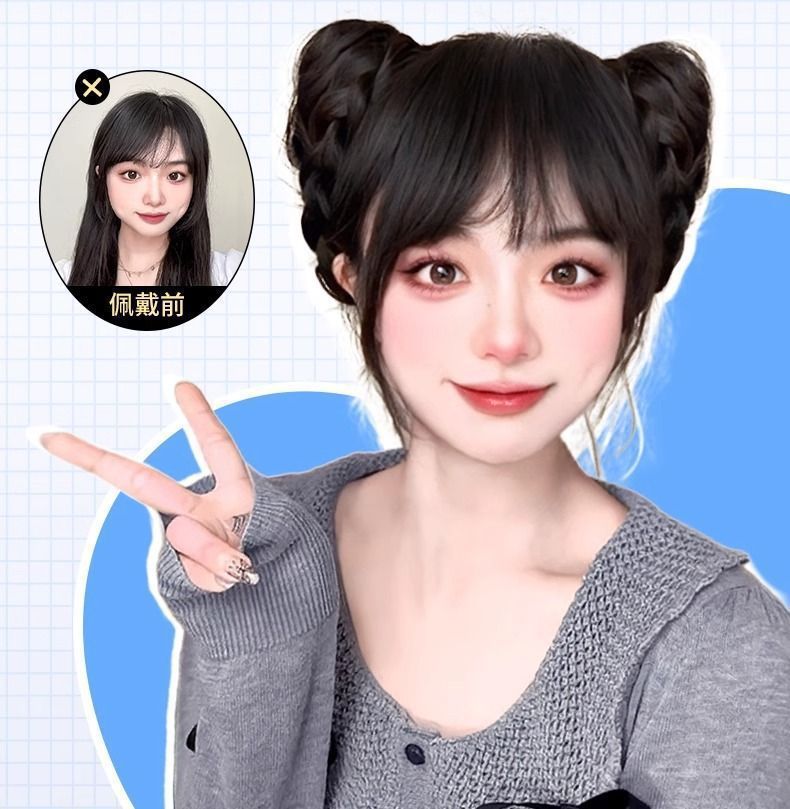 가발 머리 반지 달콤한 사랑 고양이 귀 공 머리 파악 클립 시뮬레이션 골동품 머리 팩 푹신한 게으른 유물 머리 반지스토어 가기