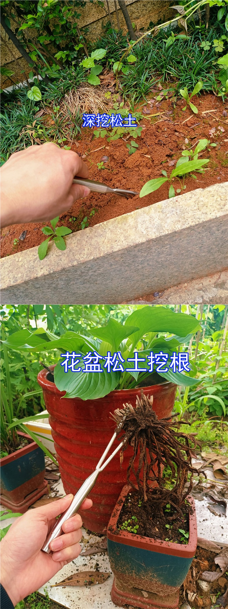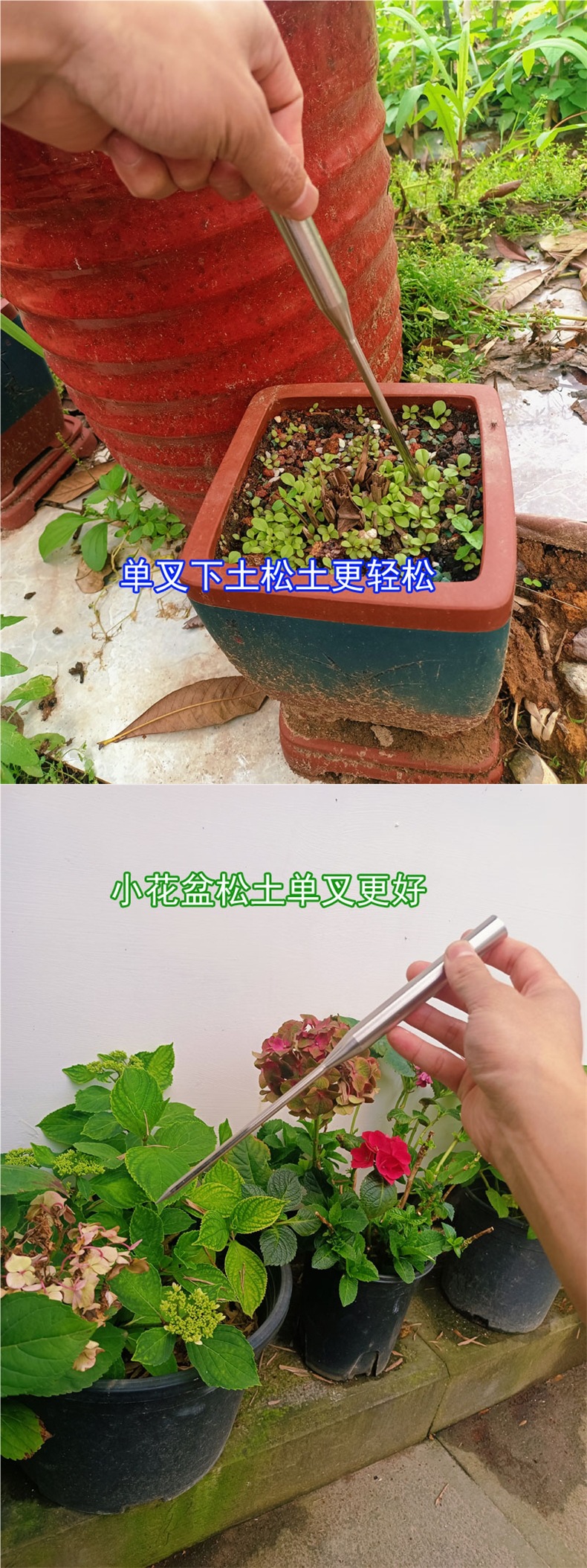 토양 풀림 이진 2 포크 싱글 포크 가정용 꽃 냄비 토양 풀림 화분 파기 단단한 스테인레스 스틸 샤프 강한 새로운 스타일