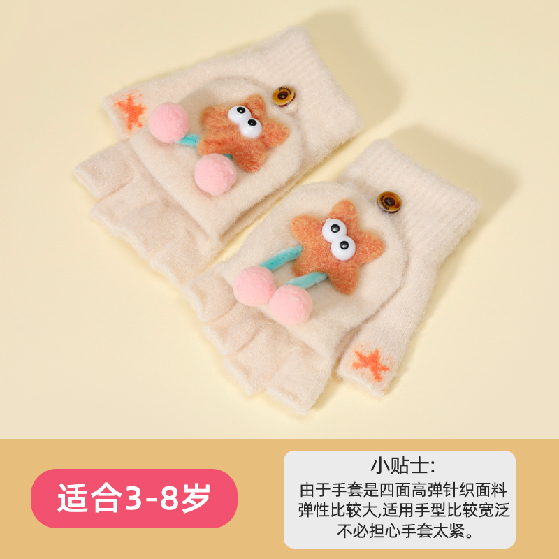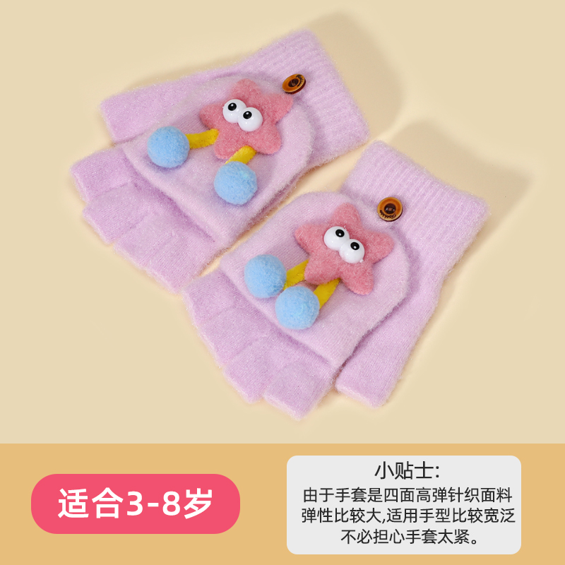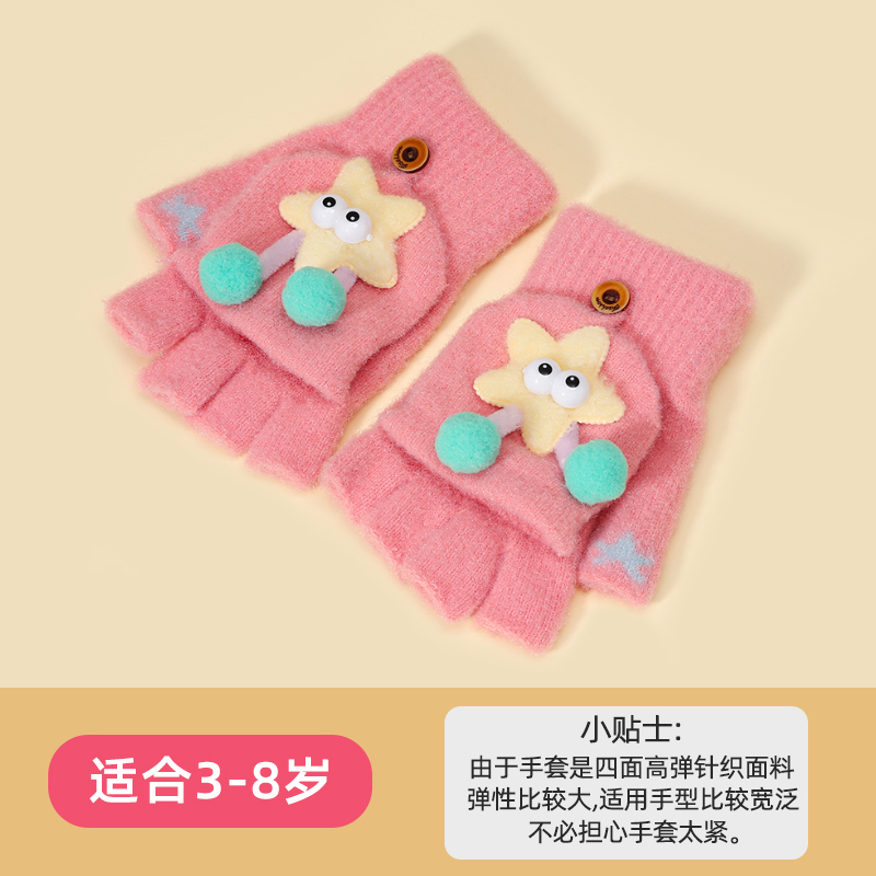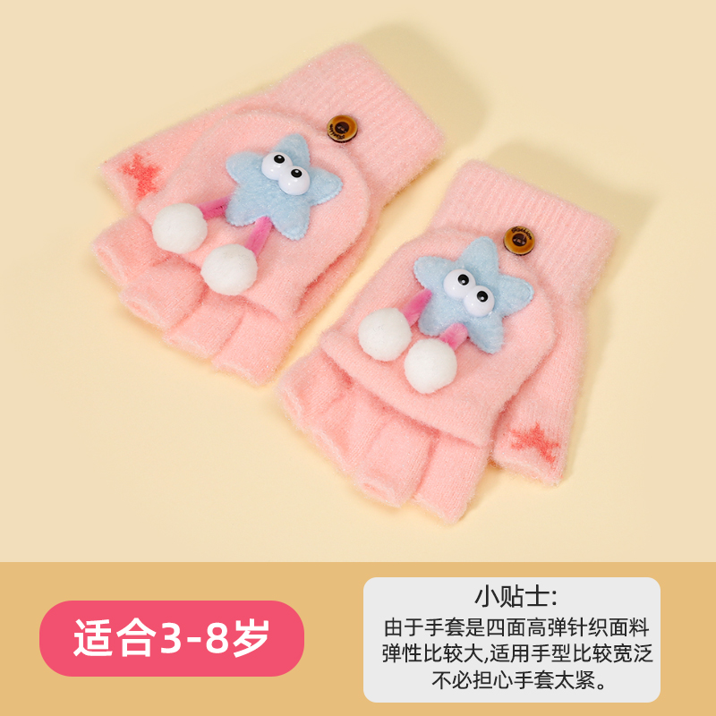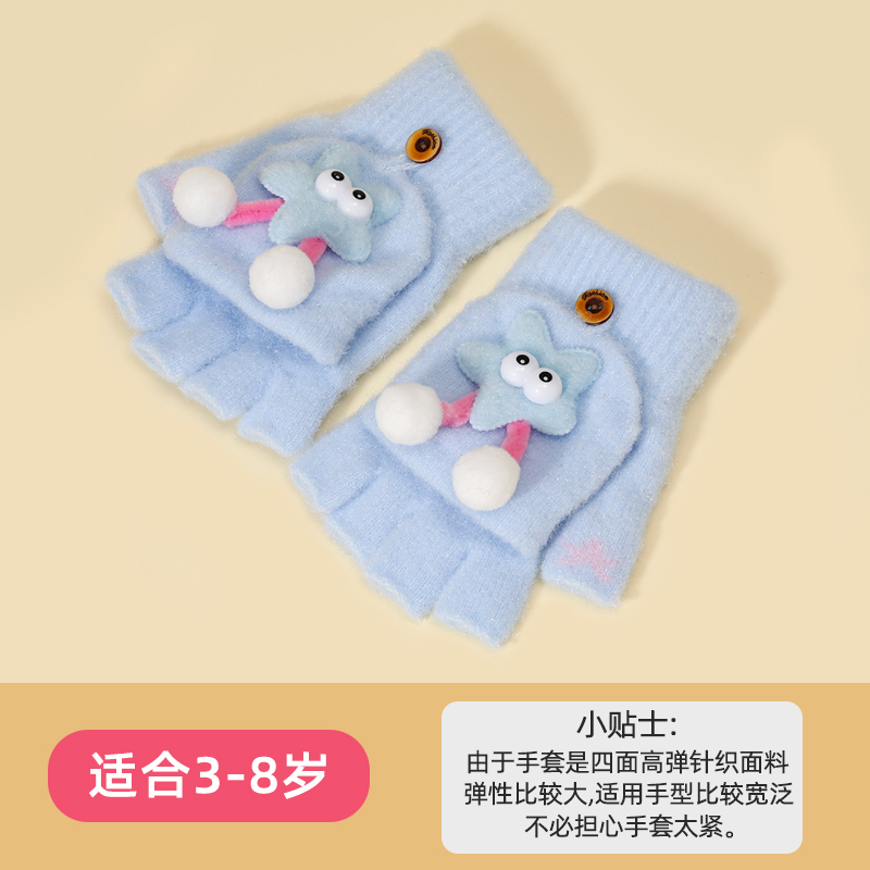 어린이 플립 장갑 귀여운 만화 초등학교 학생 겨울 따뜻한 반 손가락 쓰기 차가운 증거 손가락 장갑 소년 소녀를위한 장갑스토어 가기
