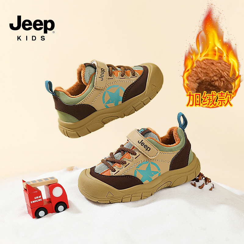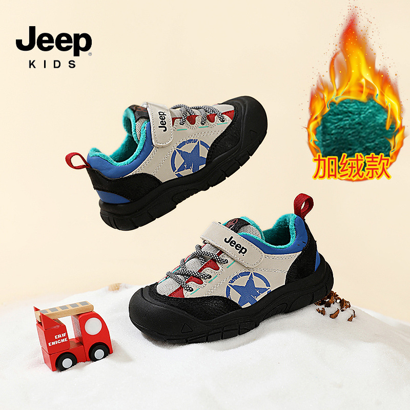 지프 어린이 2024 겨울 새로운 벨크로 운동화 여자 아기 신발 소년 기모 유아 신발스토어 가기
