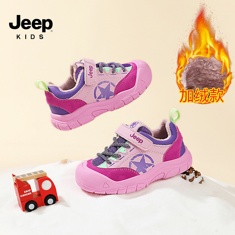지프 어린이 2024 겨울 새로운 벨크로 운동화 여자 아기 신발 소년 기모 유아 신발