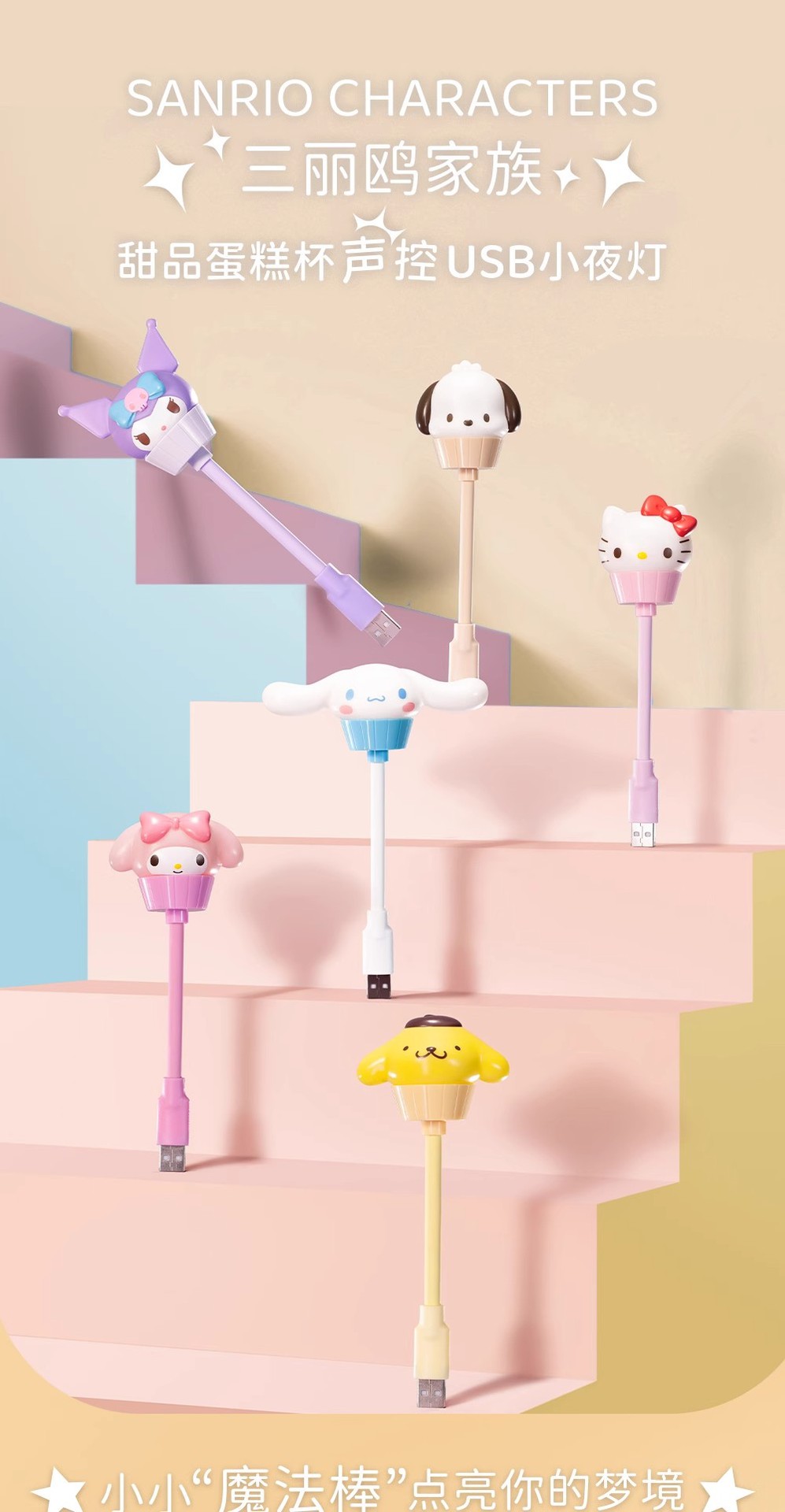 진짜 산리오 가족 디저트 케이크 컵 USB 음성 제어 밤 빛 Culomi 큰 귀 개 도매 선물스토어 가기