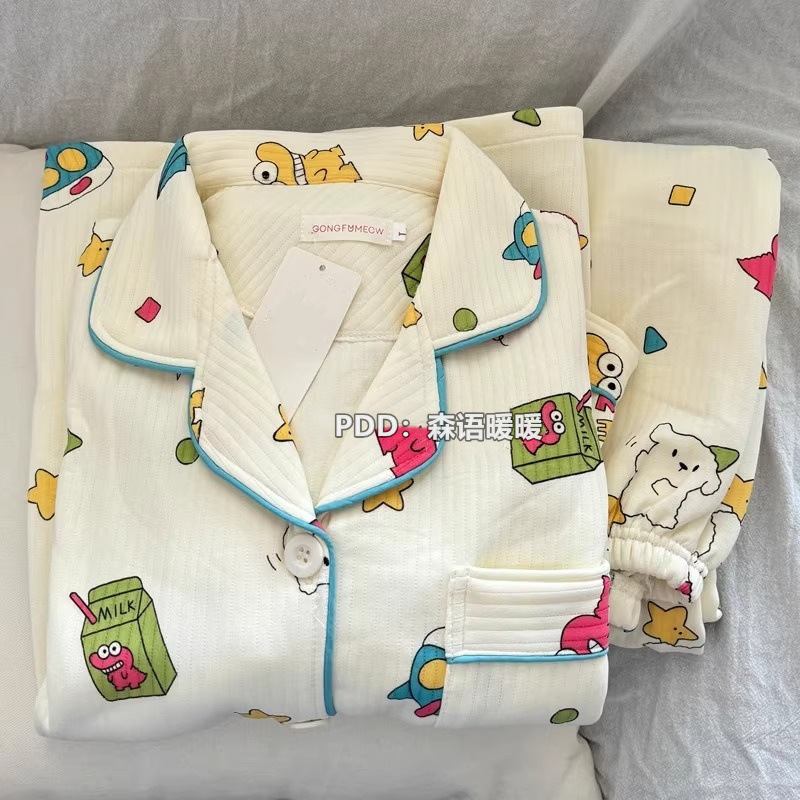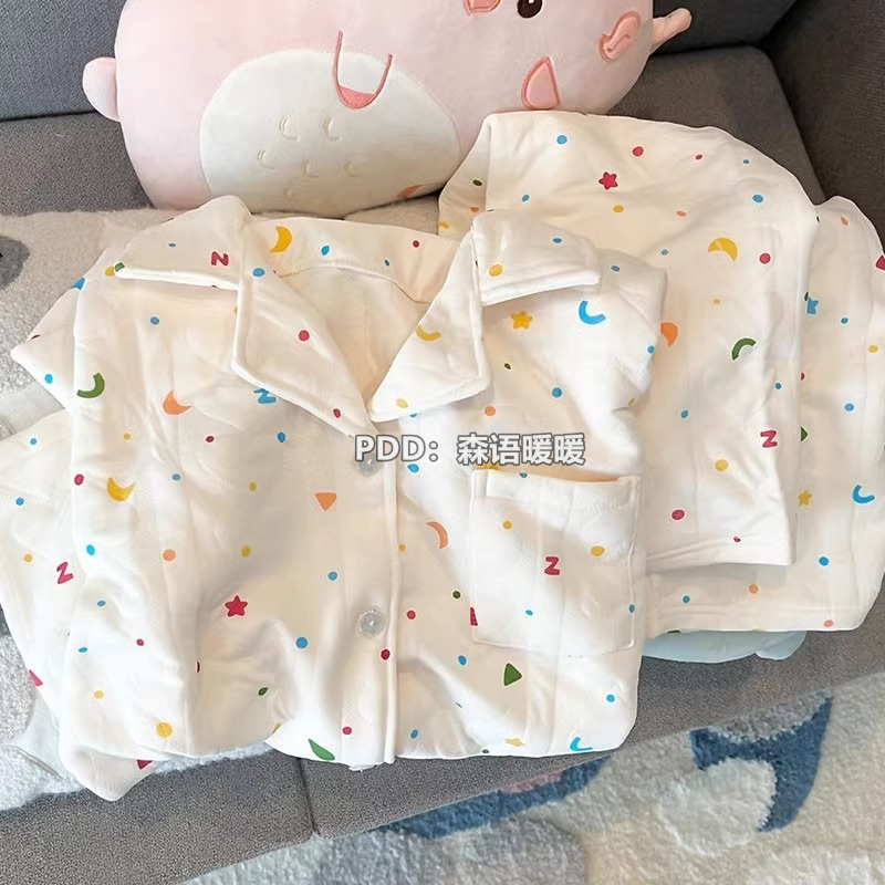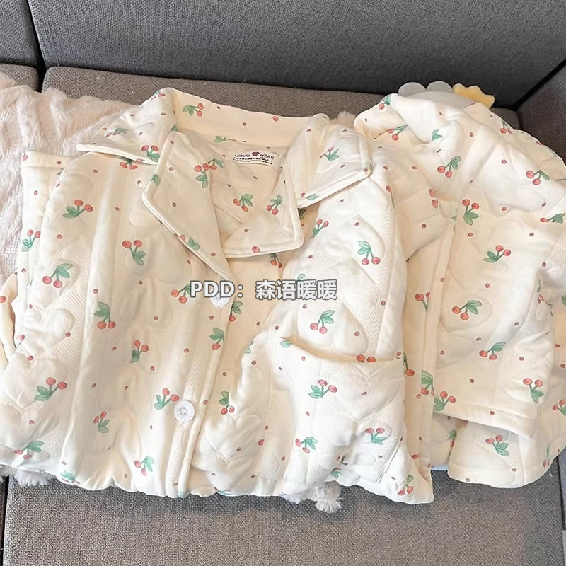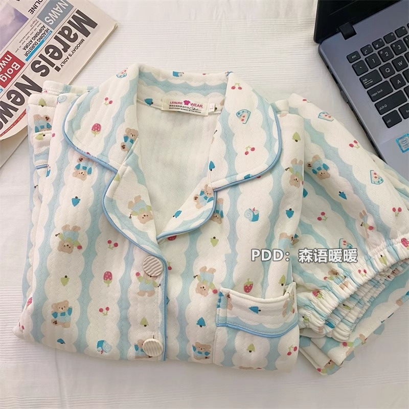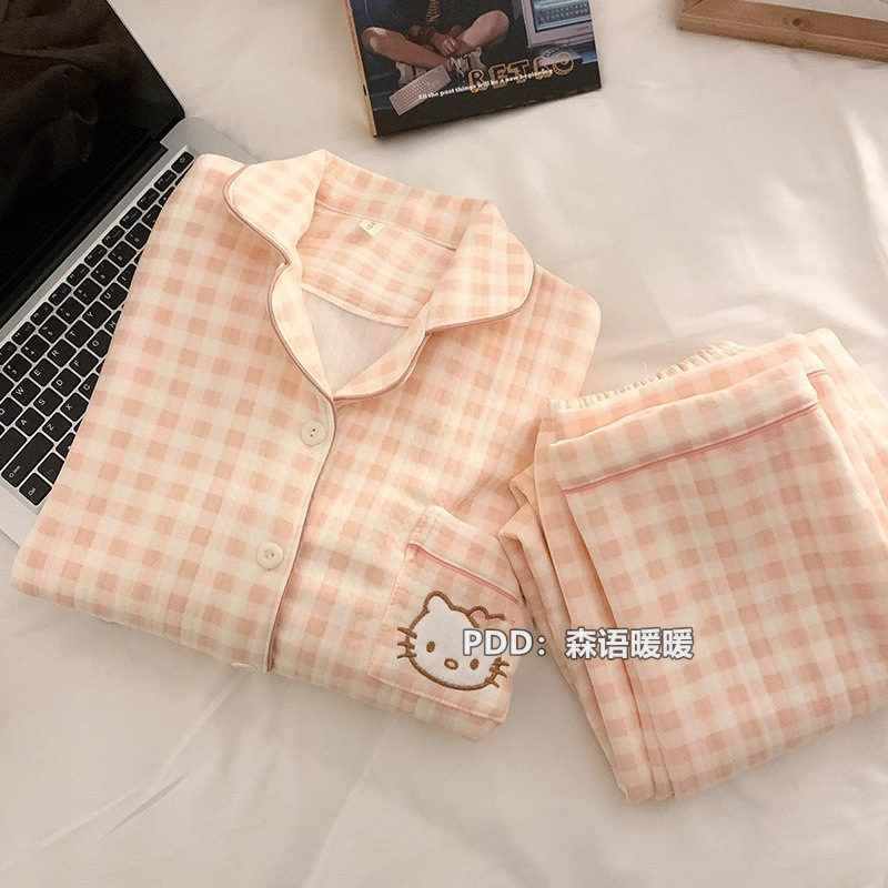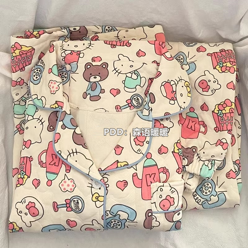 일본 헬로 키티 에어 코튼 파자마 여성의 겨울 달콤한 두꺼운 학생 캐주얼 홈 의류 세트스토어 가기