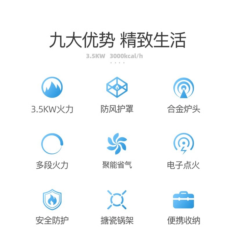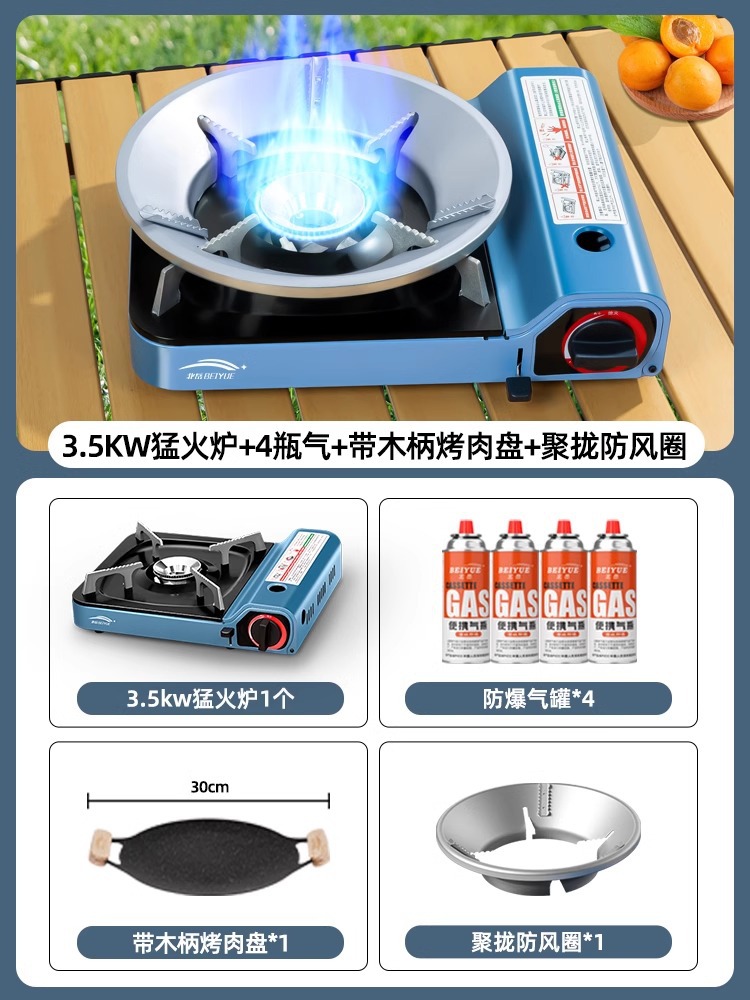 • 3.5KW 난로 + 가스 4병 + 들러붙지 않는 웍 + 집결 방풍 링