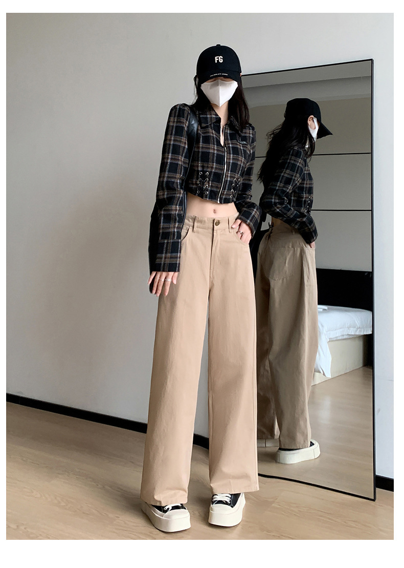 [리얼 샷 두껍게 씻은] 카키 아메리칸 스트리트 캐주얼 바지 스트레이트 바지 면 울 천