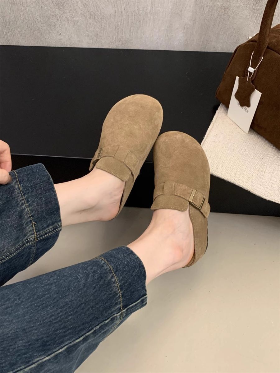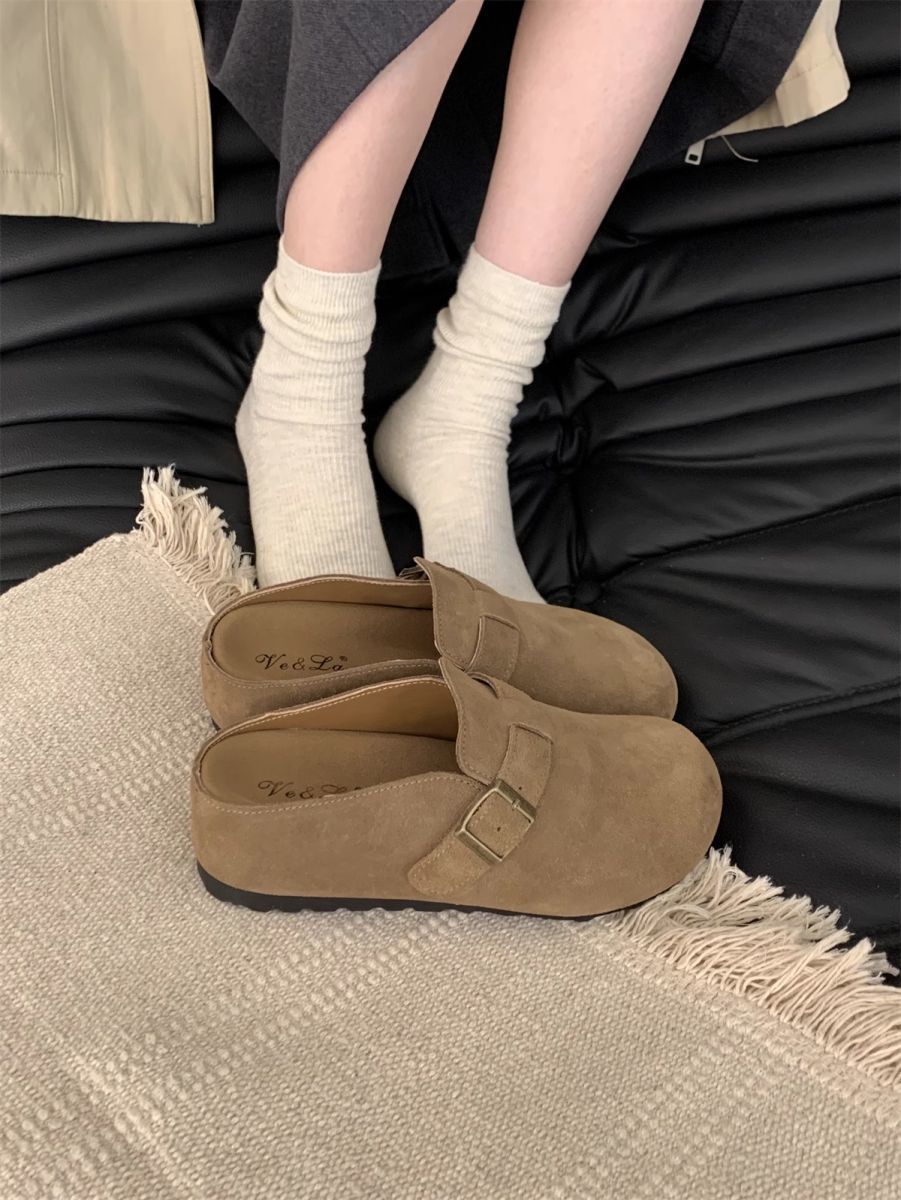 2024 년 봄과 가을 올 매치 보켄 싱글 레이어 신발 여성 신발 외화 두꺼운 밑창 다크 브라운 Baotou 하프 슬리퍼 착용스토어 가기
