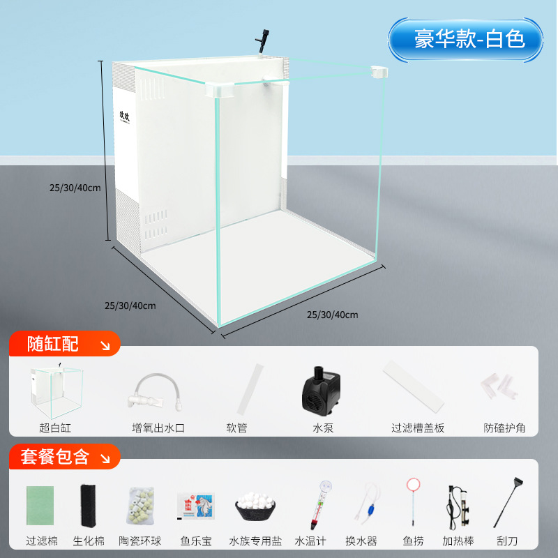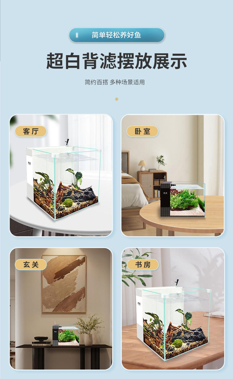 신신 백필터 수조 소형 거실 탁상용 실크스크린 초백색 어항 물갈이 필요없는 자동 조경 소형 탁상용 어항