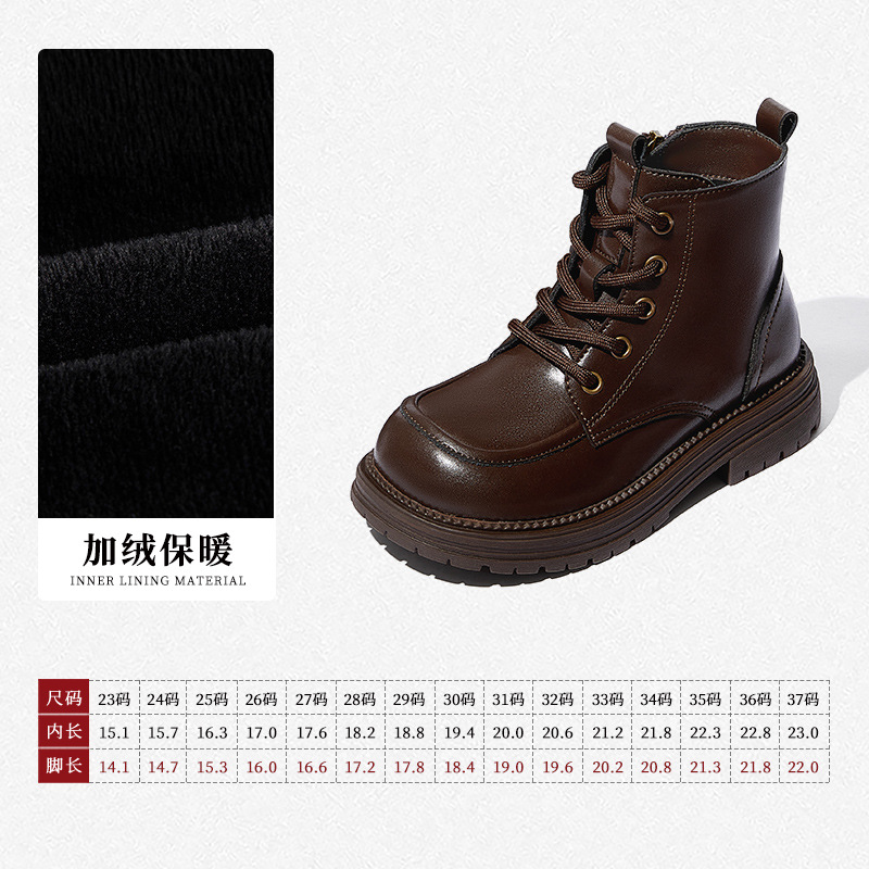 스나피 어린이 마틴 부츠 천연 가죽 여자아이 숏부츠 2024 가을 겨울 신상 어린 소녀 패션 가죽 부츠스토어 가기
