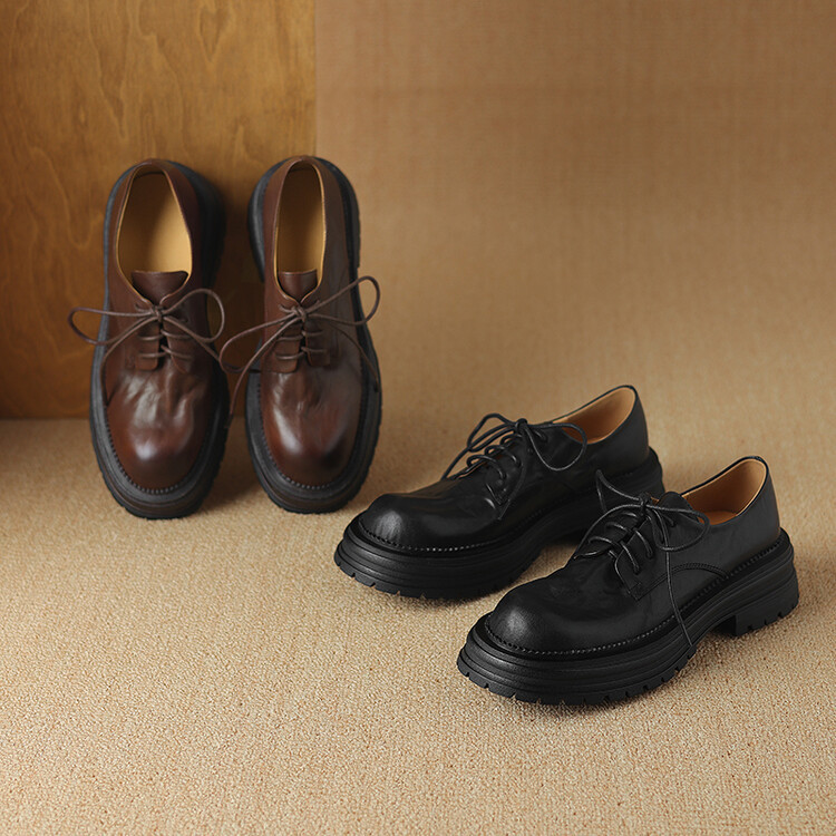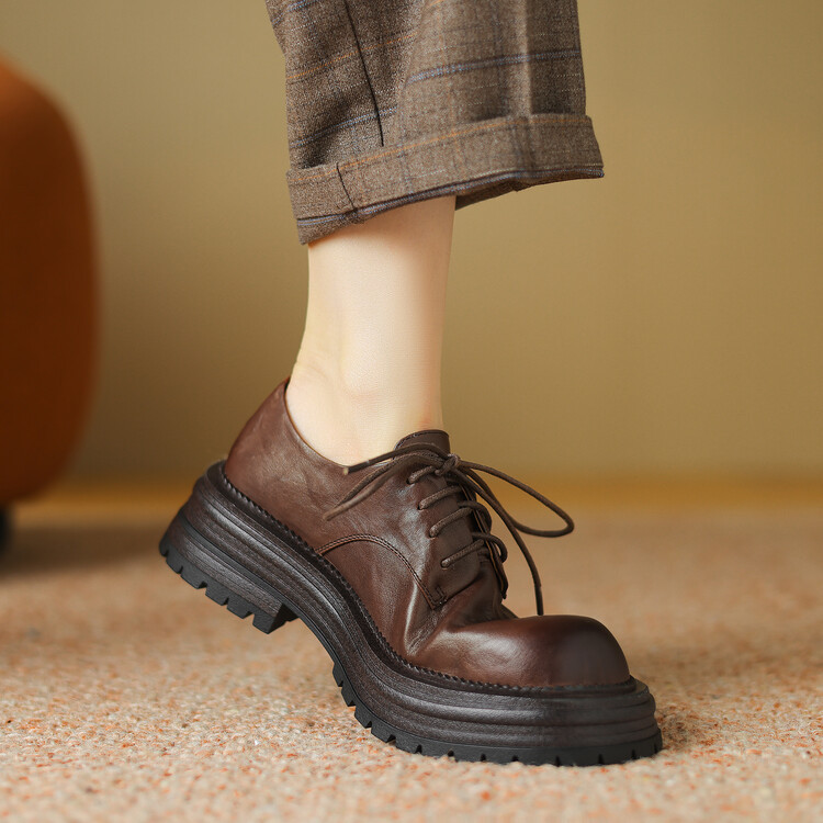 소 가죽의 첫 번째 층을 씻었습니다! 빈티지 영국 스타일 가죽 신발 여성용 레이스 업 두꺼운 옥스포드 신발 여성용 가죽 신발스토어 가기