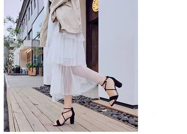 인터넷 유명 인사, 하이 페이스 가치 로마 샌들 여성 2024 년 새로운 도착 유행 올매치 학생 버클이 달린 하이힐 하이힐 신발스토어 가기