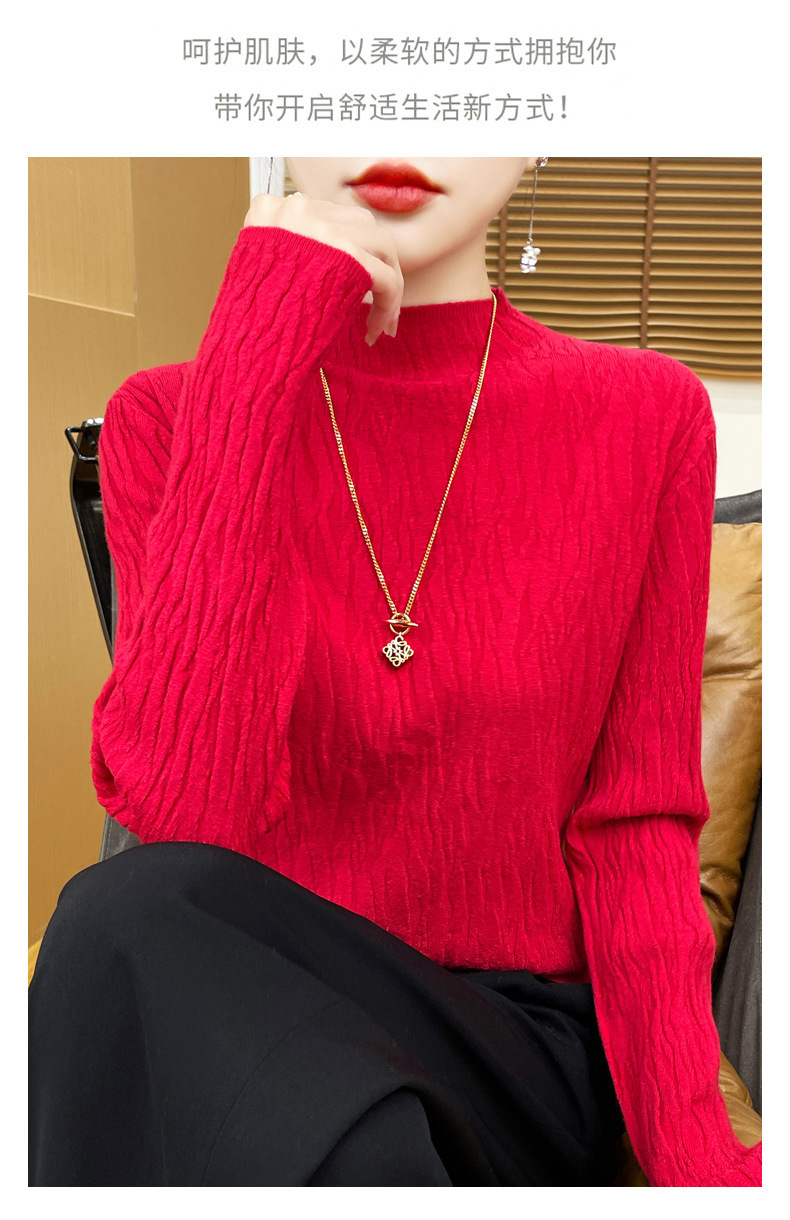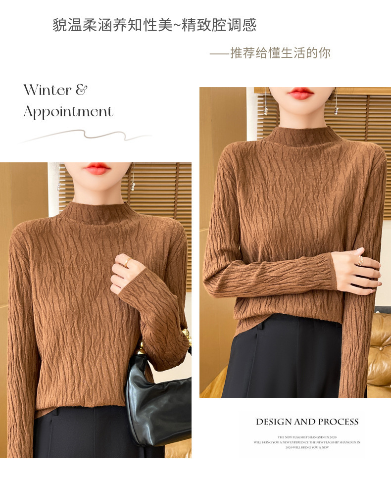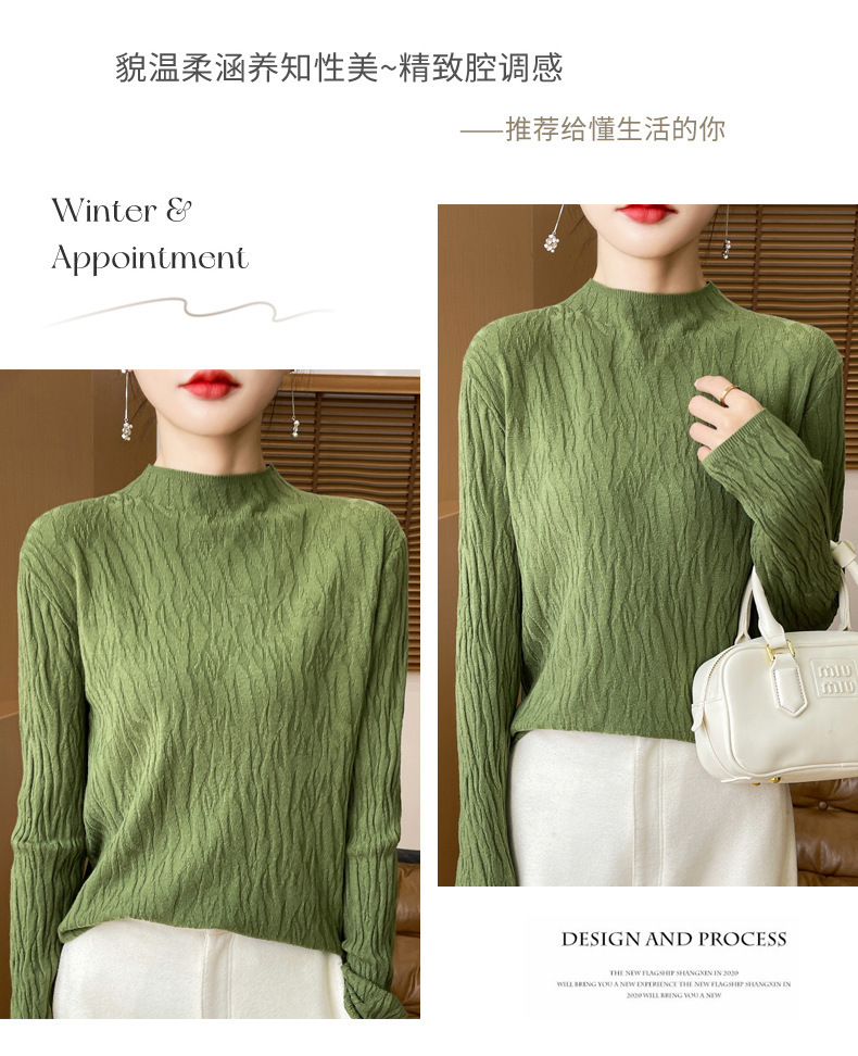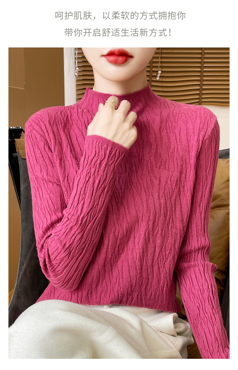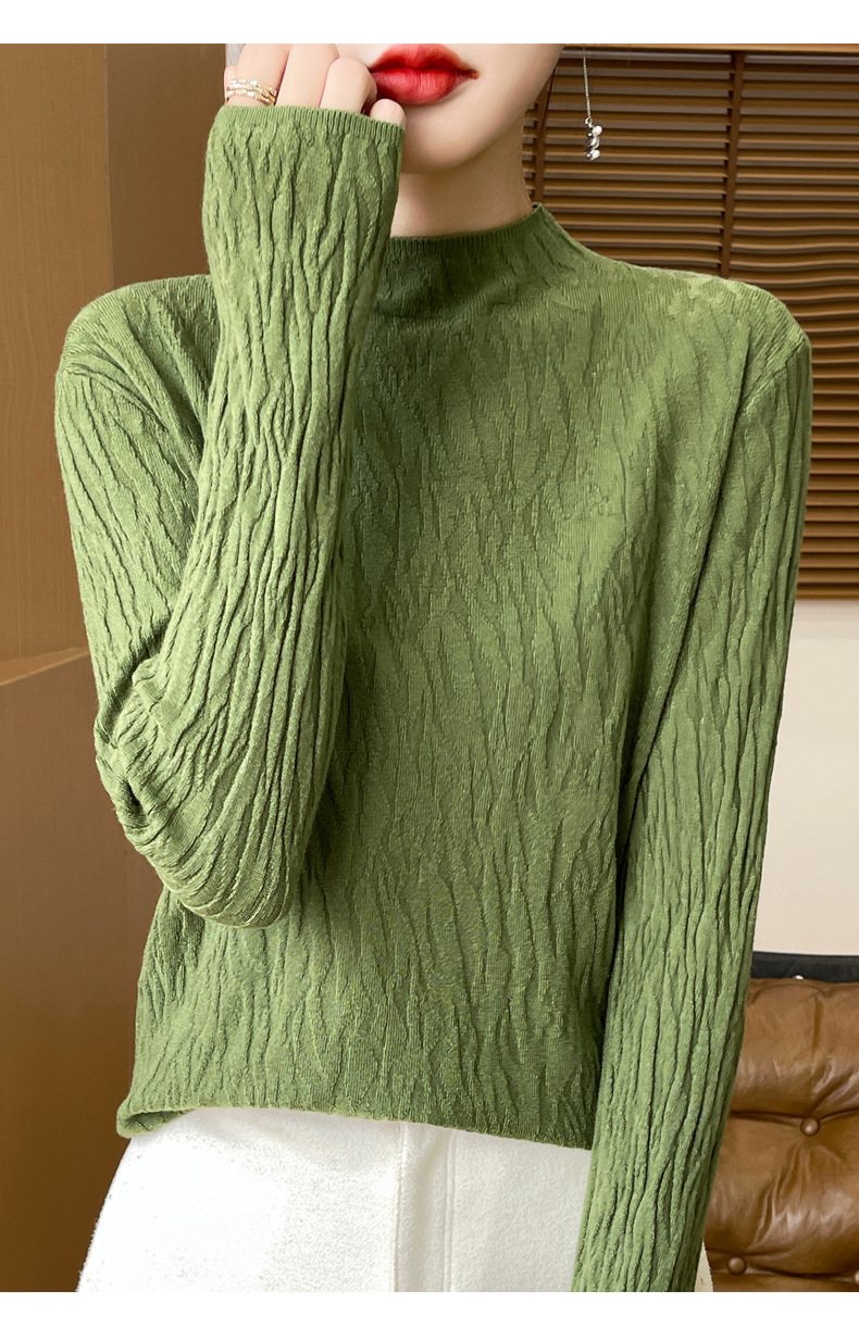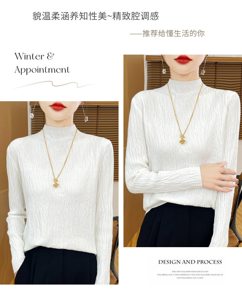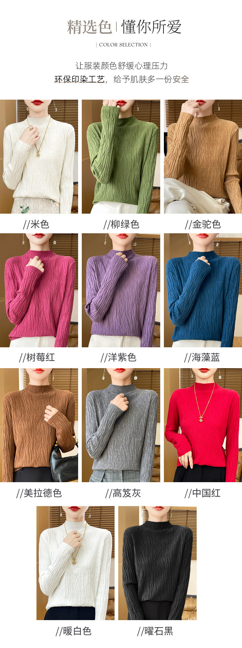 새로운 세미 하이 칼라 껍질 스펀 원사 니트베이스 셔츠 여성 솔리드 컬러 긴 소매 캐주얼 단순 루즈베이스스토어 가기
