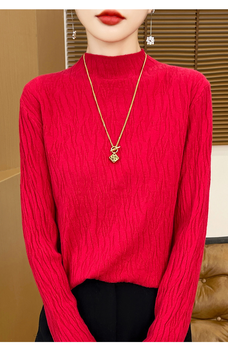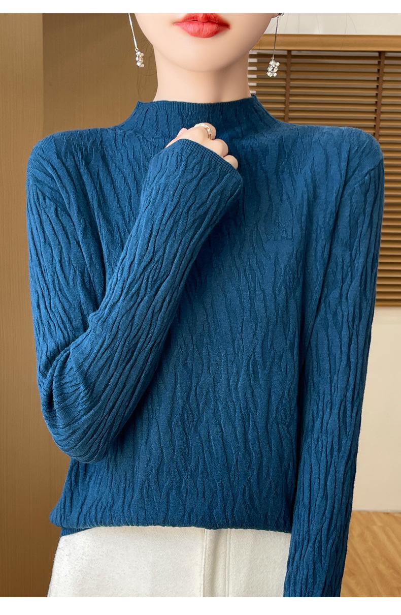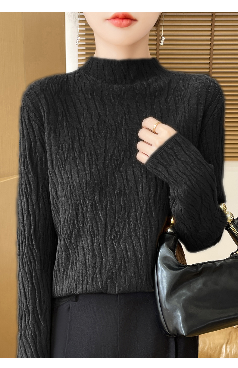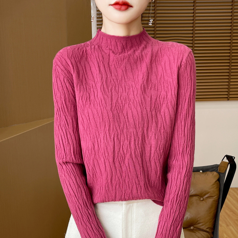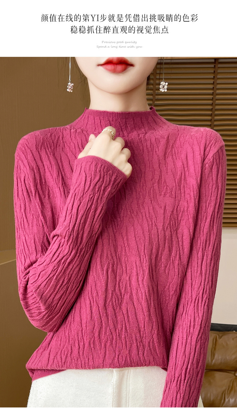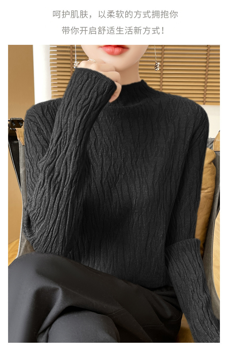 새로운 세미 하이 칼라 껍질 스펀 원사 니트베이스 셔츠 여성 솔리드 컬러 긴 소매 캐주얼 단순 루즈베이스스토어 가기