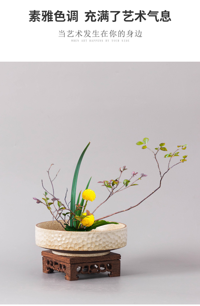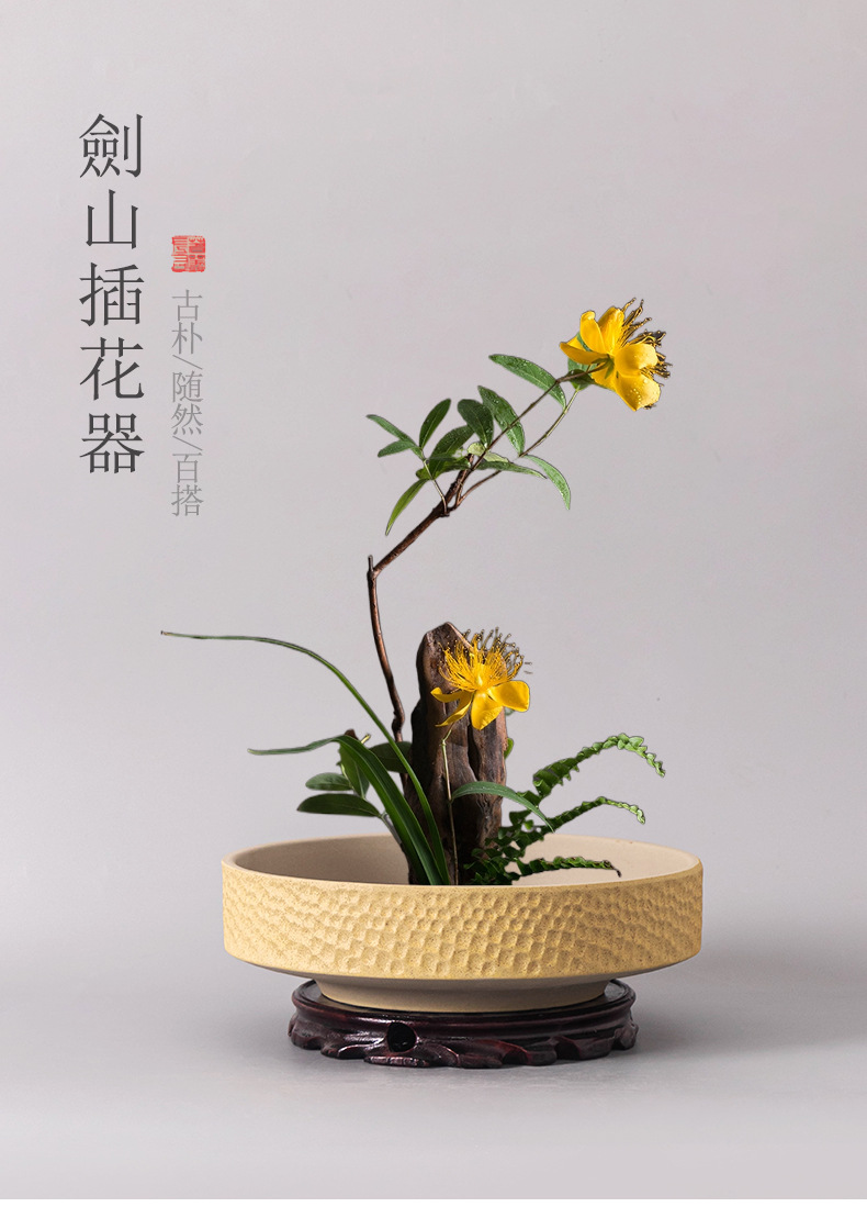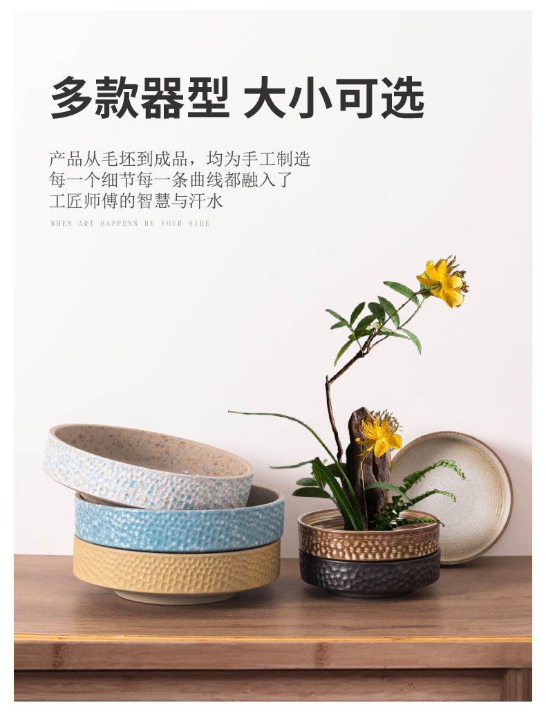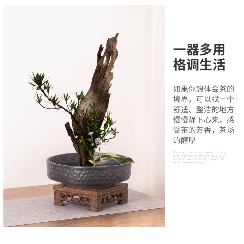 중국 스타일의 Jianshan 분지 세라믹 꽃 장식 데스크탑 장식품 대형 직경 망치 패턴 라운드 분지 수경 용품 홈 장식 꽃 냄비