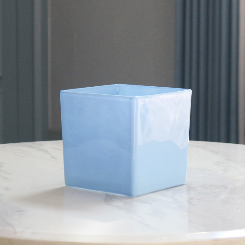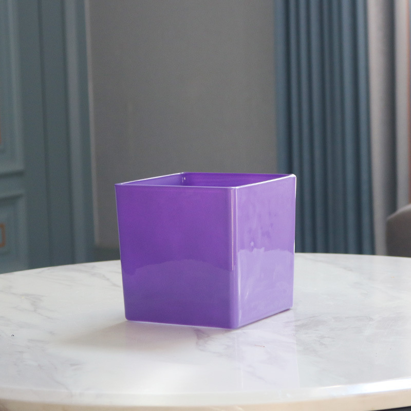 간단한 전기 도금 꽃병 흑백 투명 사각형 실린더 사각형 유리 물고기 탱크 수경 장식품 꽃 용품 꽃 용품