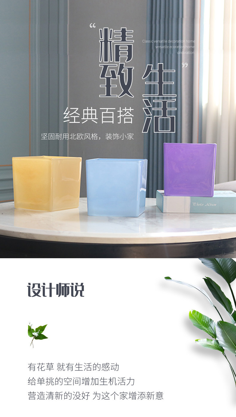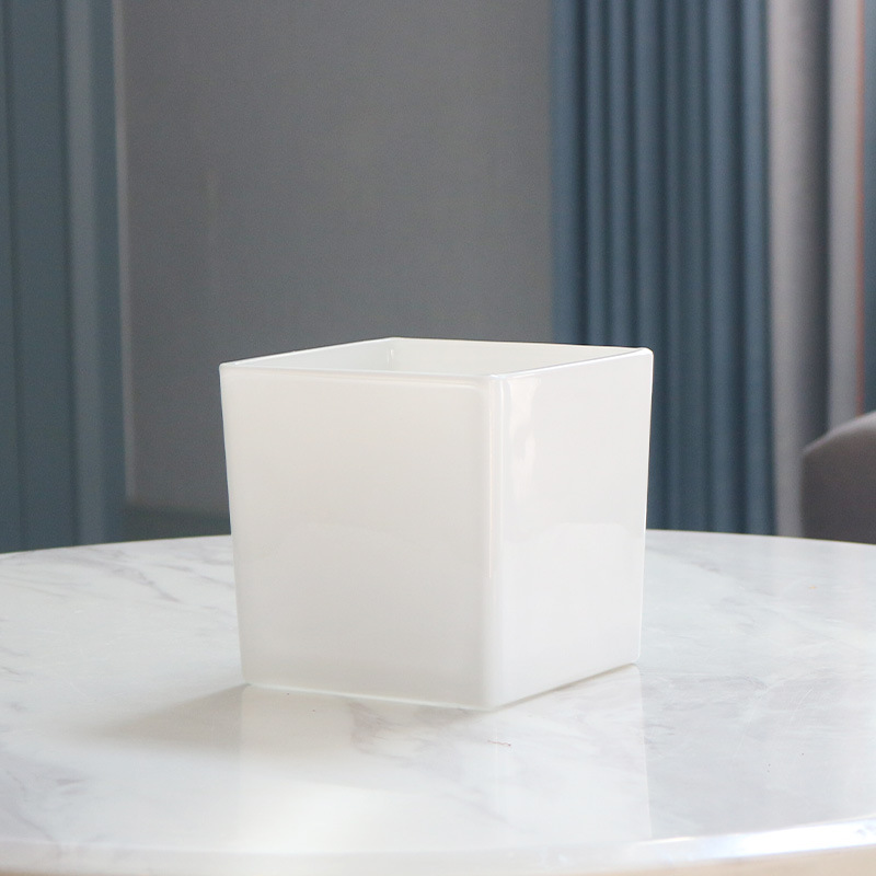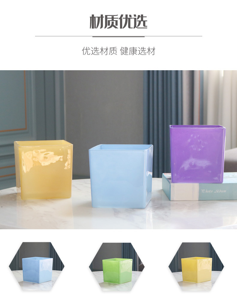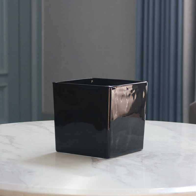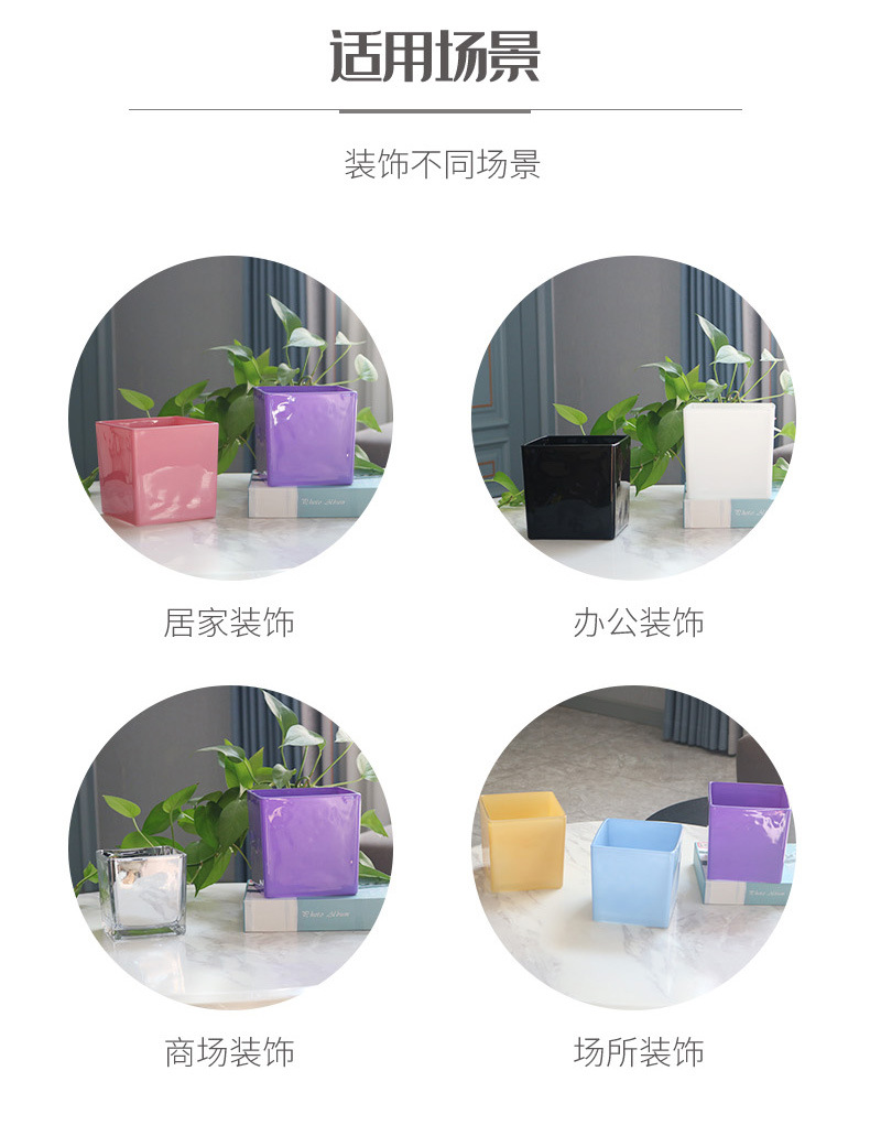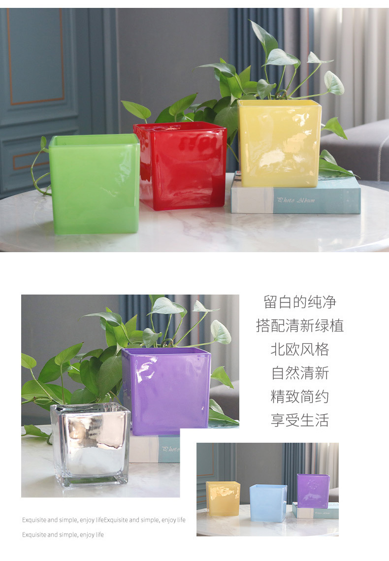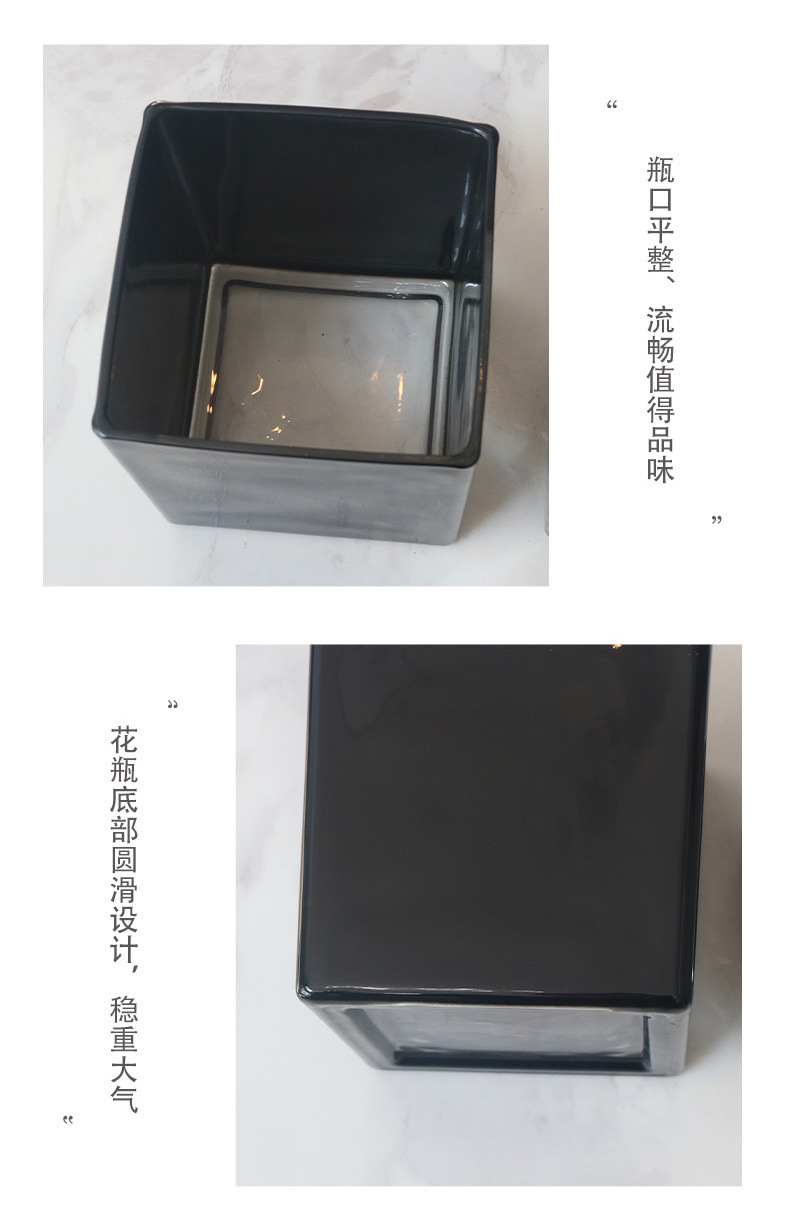 간단한 전기 도금 꽃병 흑백 투명 사각형 실린더 사각형 유리 물고기 탱크 수경 장식품 꽃 용품 꽃 용품스토어 가기
