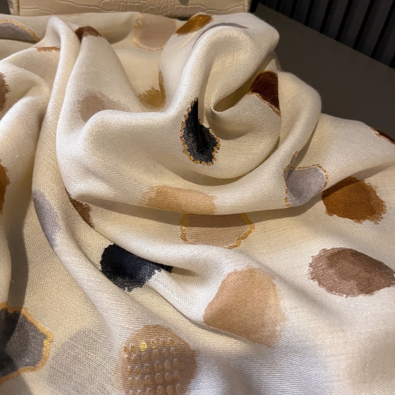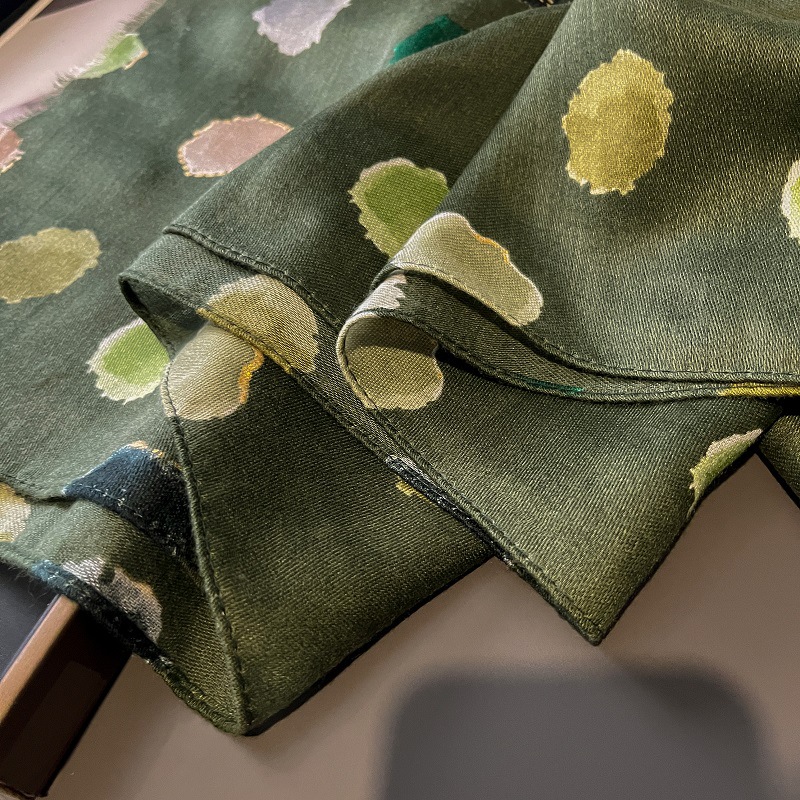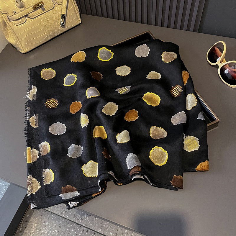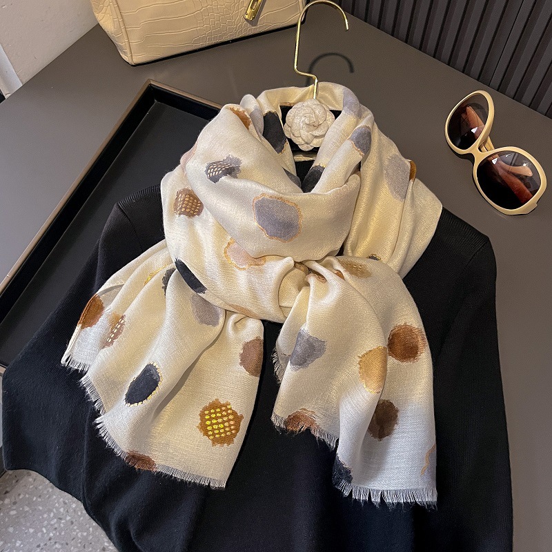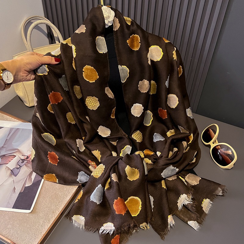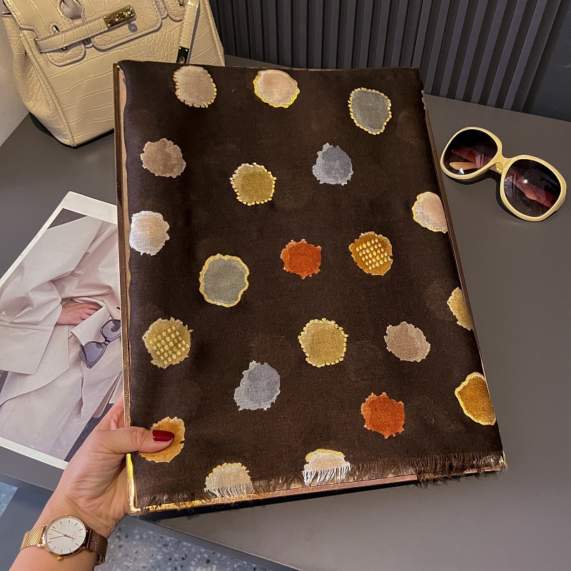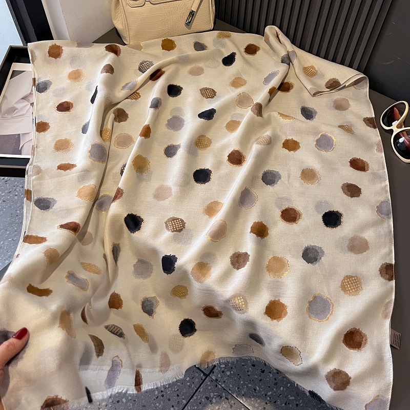 가을과 겨울면화와 린넨 손 스카프 새틴 브론징 컬러 웨이브 도트 실크 스카프 따뜻한 목도리를 위해 국경을 넘는 유럽과 미국의 프랑스 수출스토어 가기