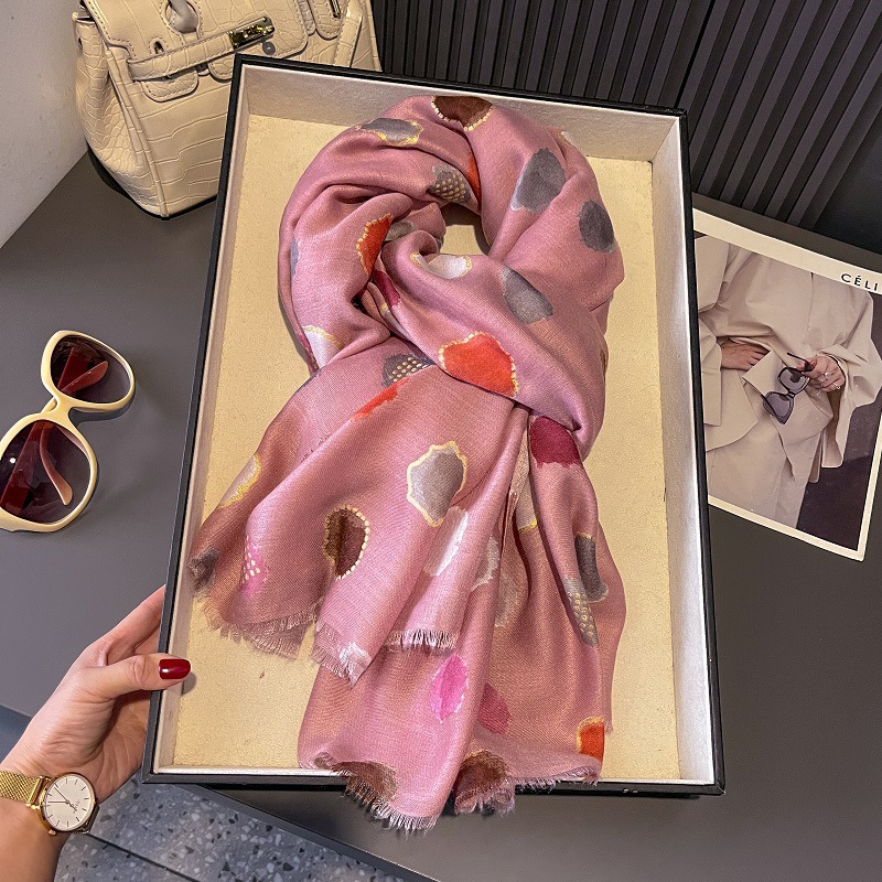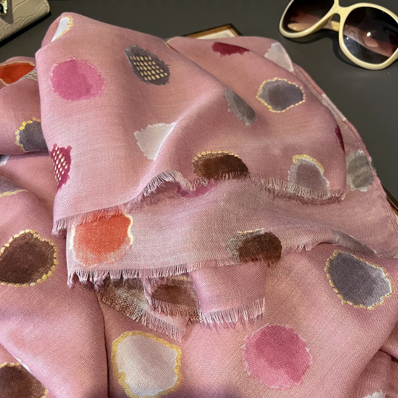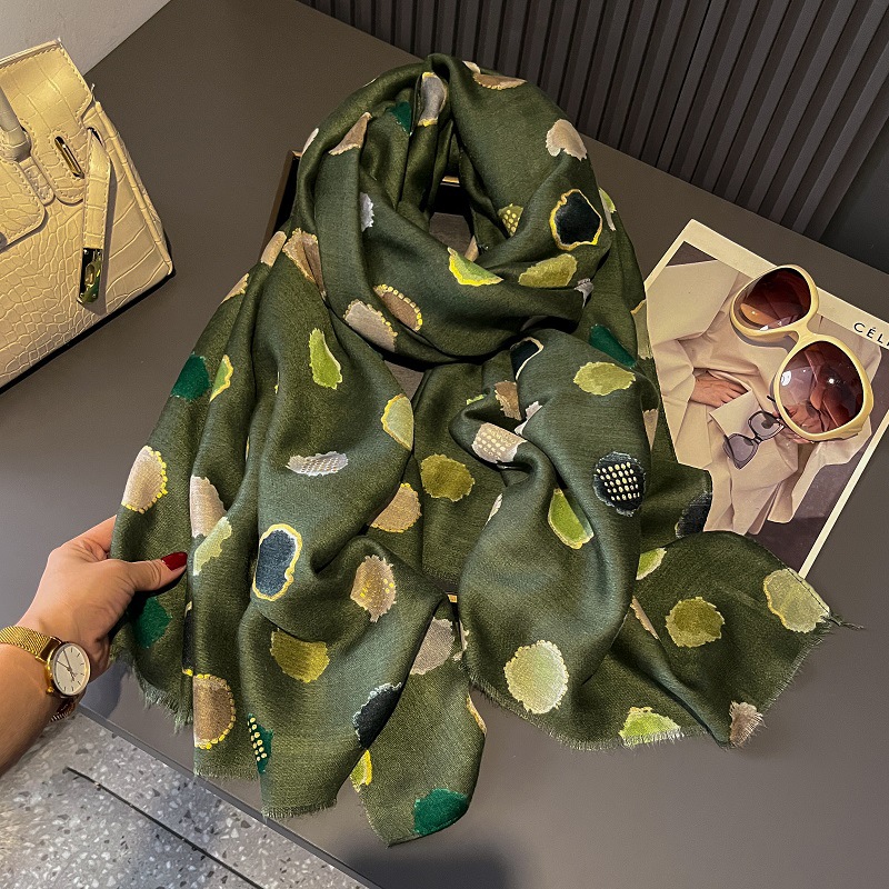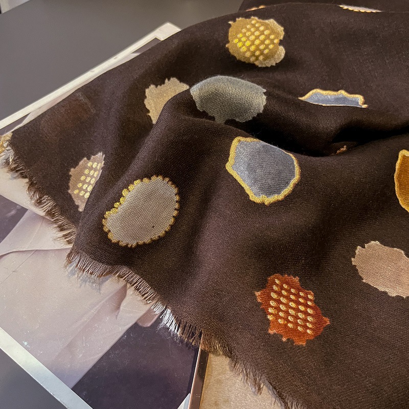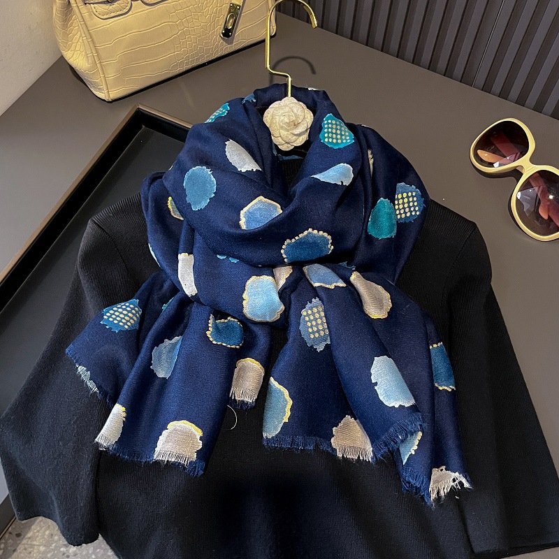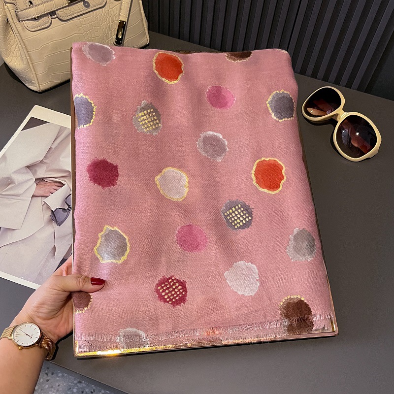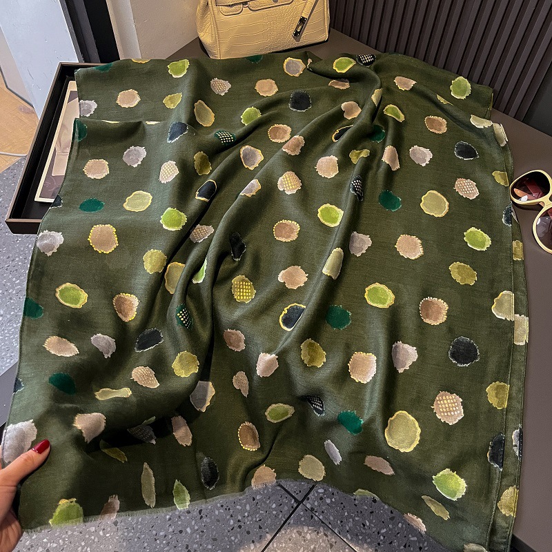 가을과 겨울면화와 린넨 손 스카프 새틴 브론징 컬러 웨이브 도트 실크 스카프 따뜻한 목도리를 위해 국경을 넘는 유럽과 미국의 프랑스 수출스토어 가기
