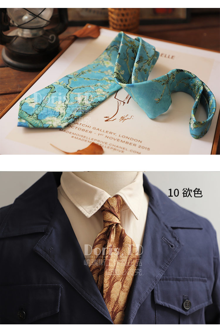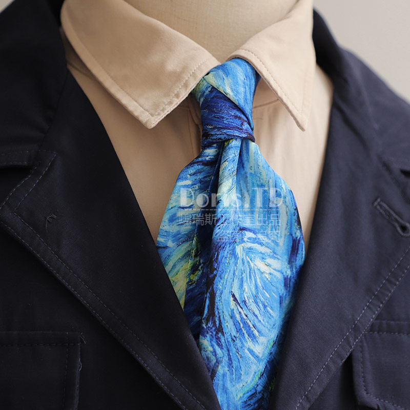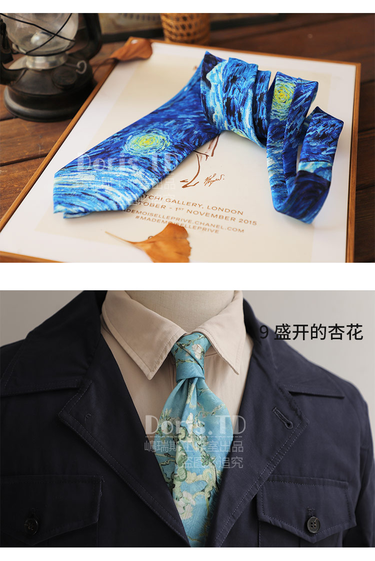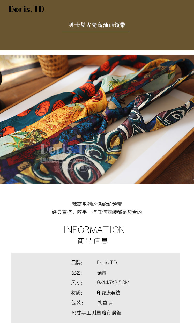 반 고흐의 그림 레트로 캐주얼 아메리칸 프린트 레트로 유화 넥타이 남녀 거리 유피 스타일 선물 상자