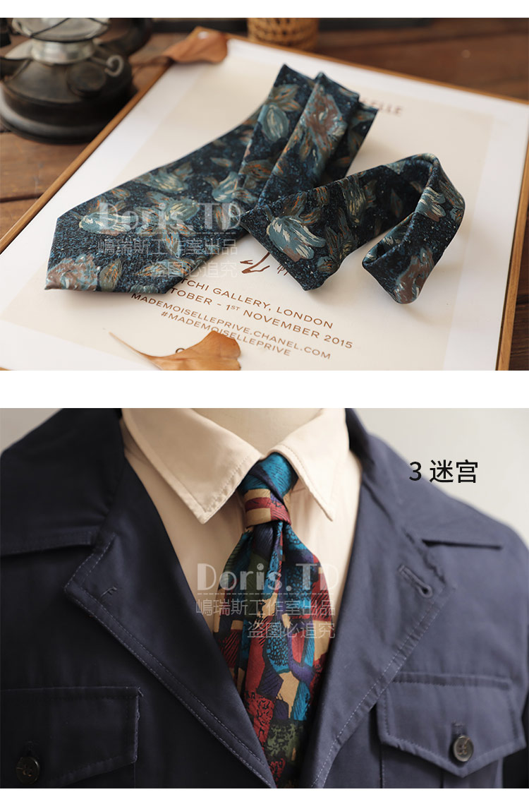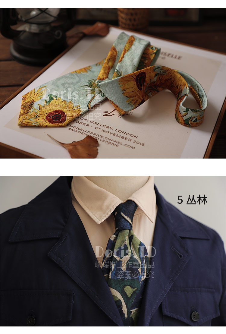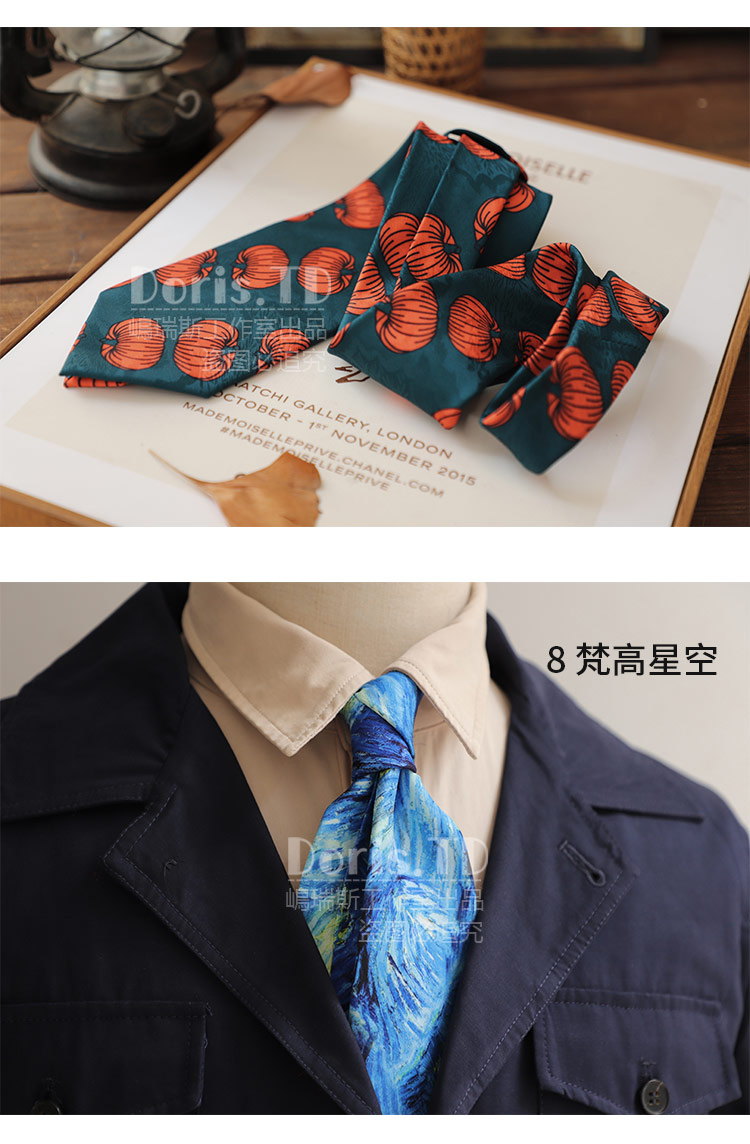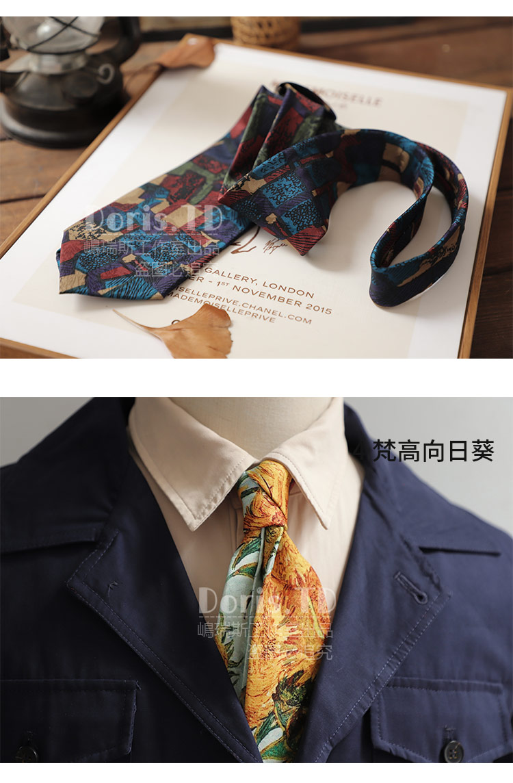 반 고흐의 그림 레트로 캐주얼 아메리칸 프린트 레트로 유화 넥타이 남녀 거리 유피 스타일 선물 상자