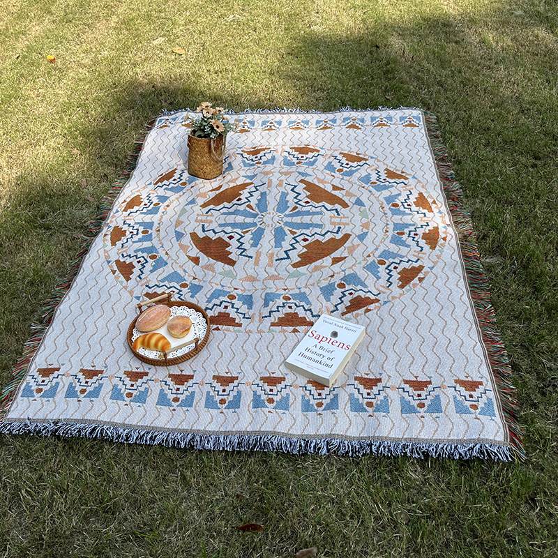 ✅ 텐트 방습 피크닉 매트 캠핑 테이블보 잔디 매트 보헤미안 니트 라인 담요 미국식 야외 캠핑