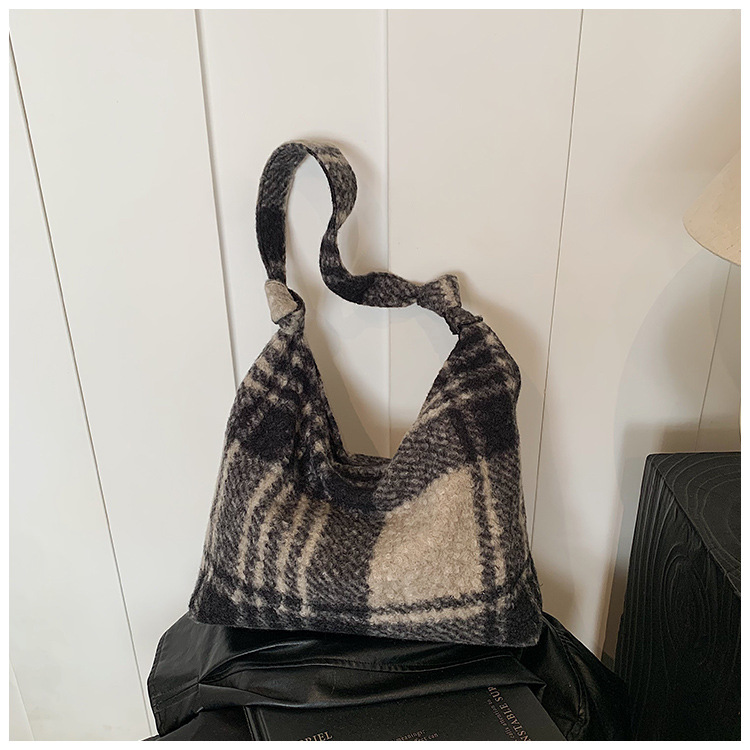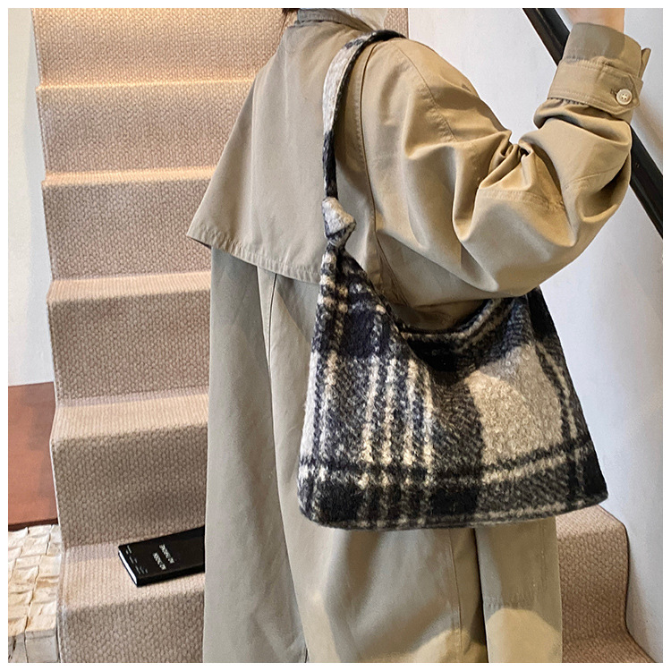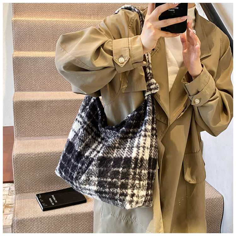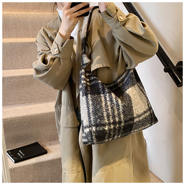 국경을 넘나 드는 한국 겨울 새로운 도착 봉제 대용량 크로스 바디 여성용 가방 토트 백 체크 무늬 게으른 스타일 한 어깨 언더암 가방스토어 가기