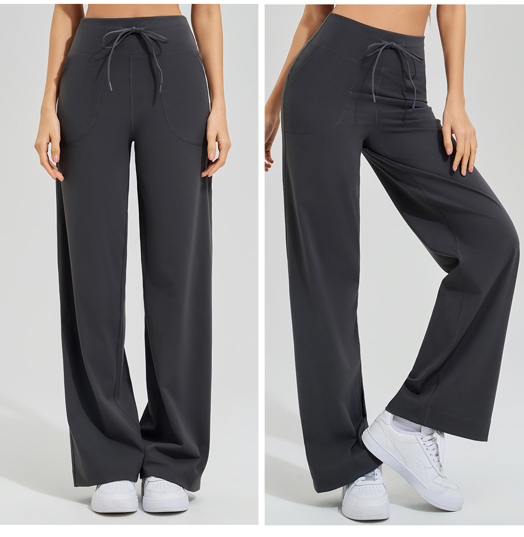 높은 허리 길어진 탄성 밴드 lu 요가 바지 빠른 건조 통기성 느슨한 실행 스포츠 자른 바지 도매 여성