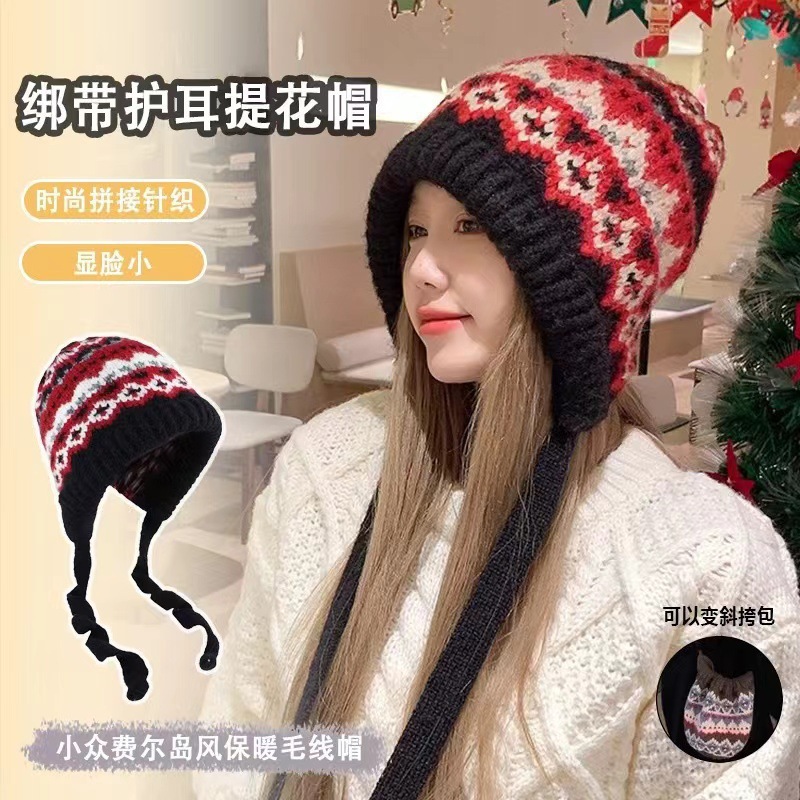 겨울 따뜻한 모자 어린이 국경 페어 아일랜드 바람 라파 모자 클라인 블루 니트 양모 모자 가방 모자스토어 가기