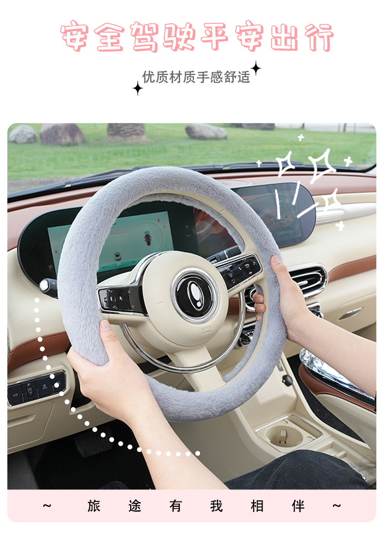 • 모조 토끼 모피 스티어링 휠 커버 그레이