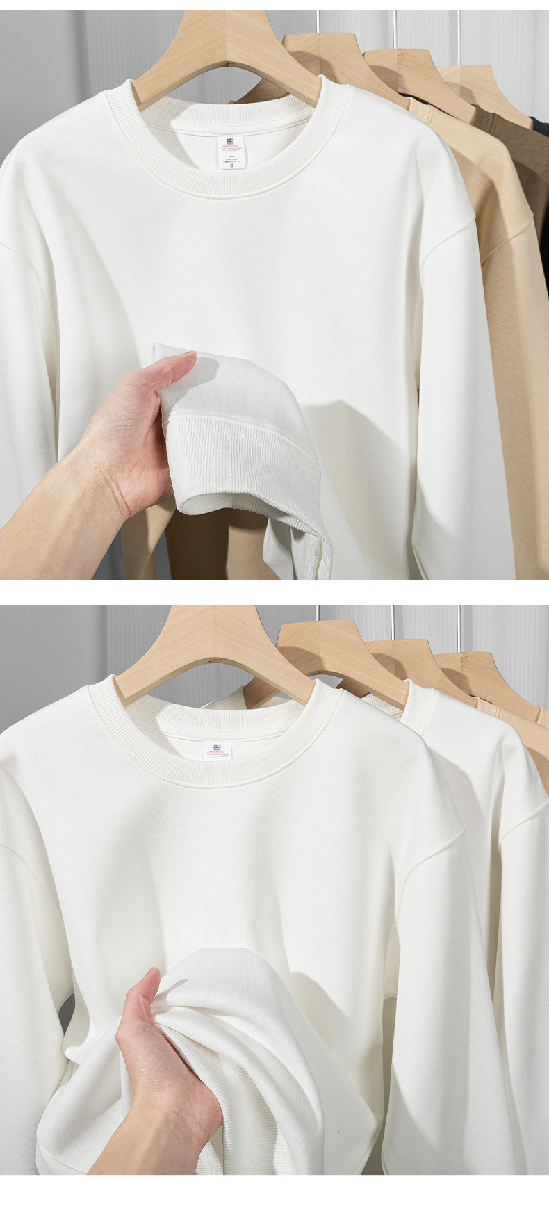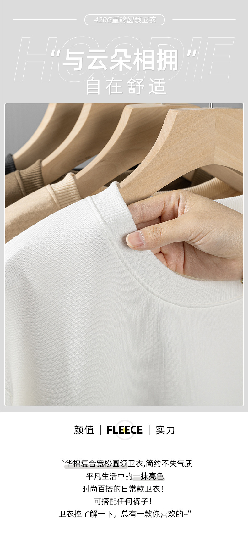 부드럽고 편안합니다! 420g 헤비웨이트 화이트 코튼 플리스 라운드넥 드롭숄더 스웨트셔츠 남성용 가을 겨울 맞춤형 베이스 레이어 상의스토어 가기