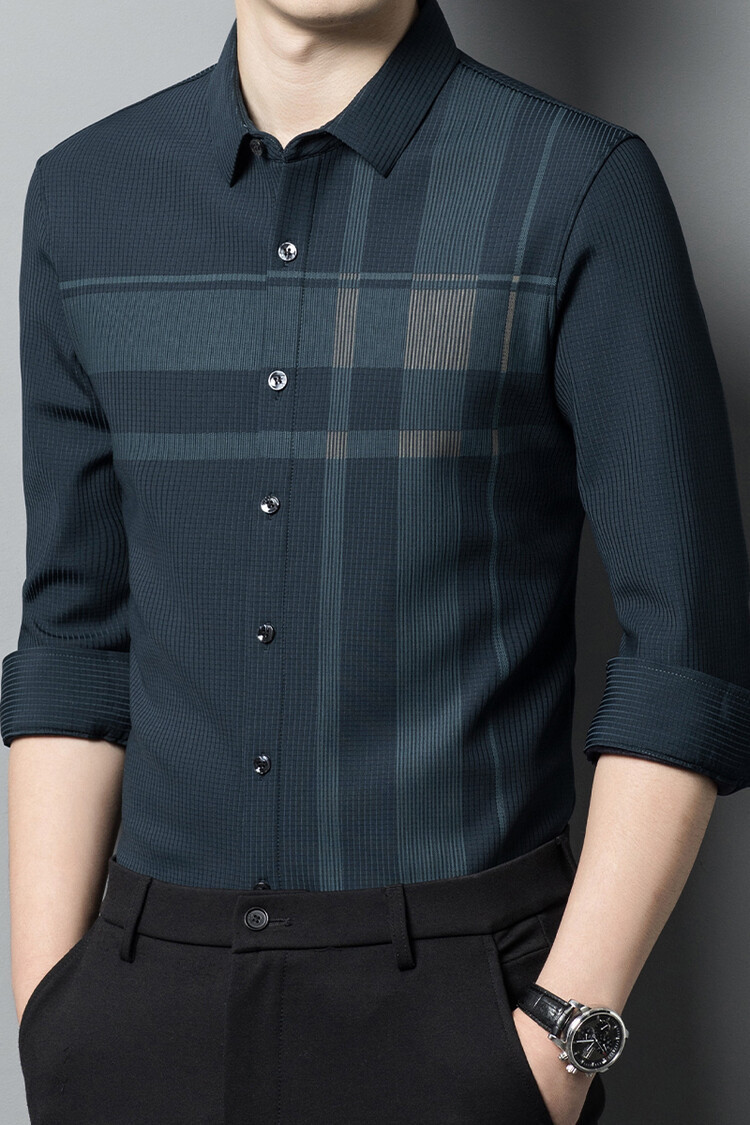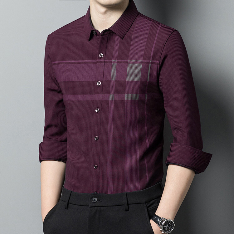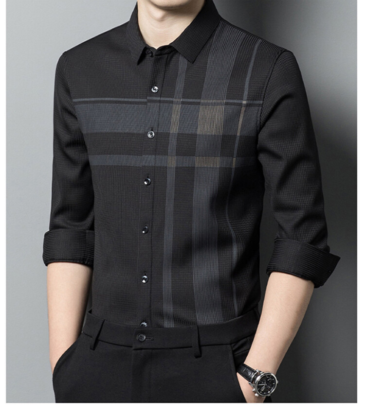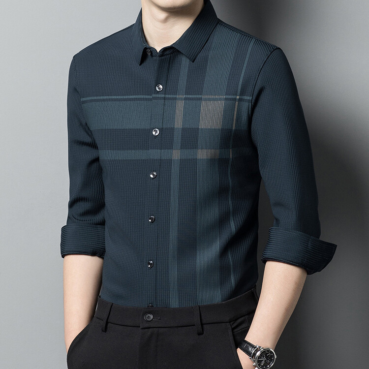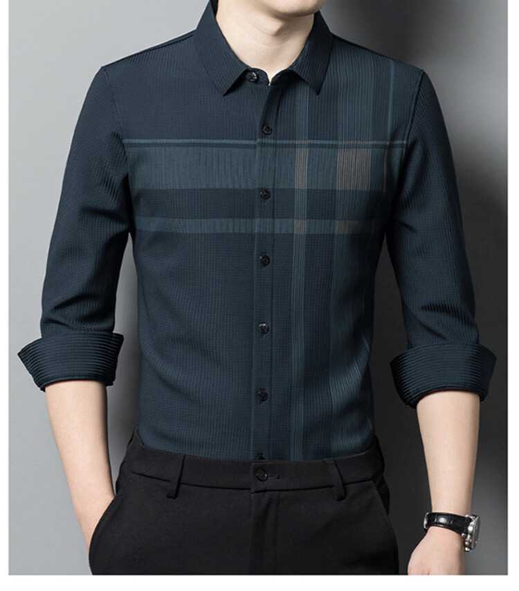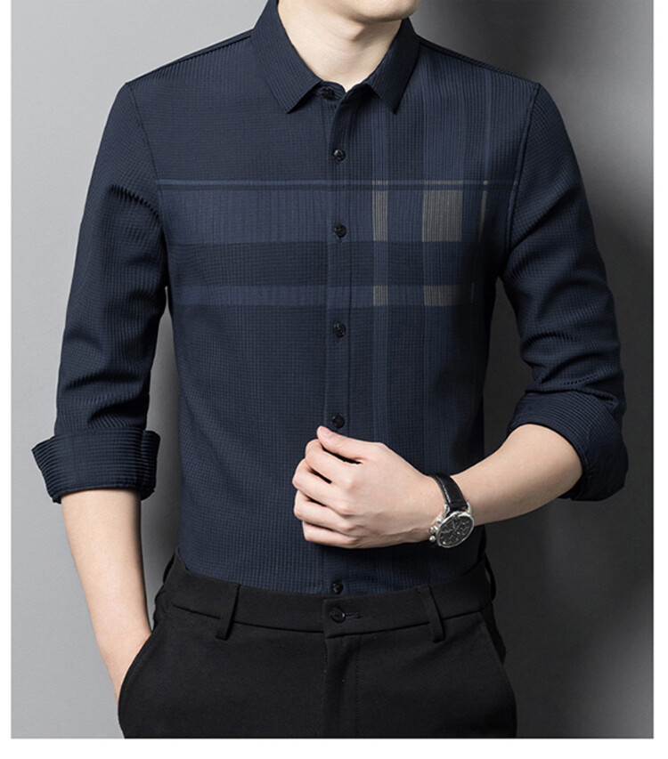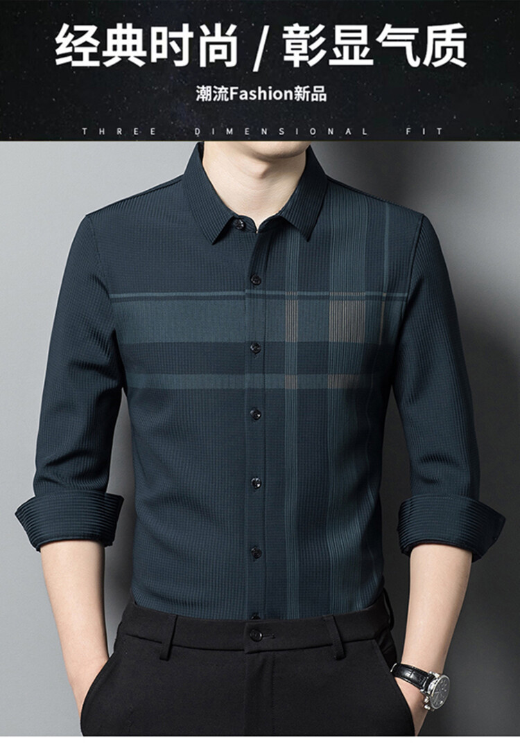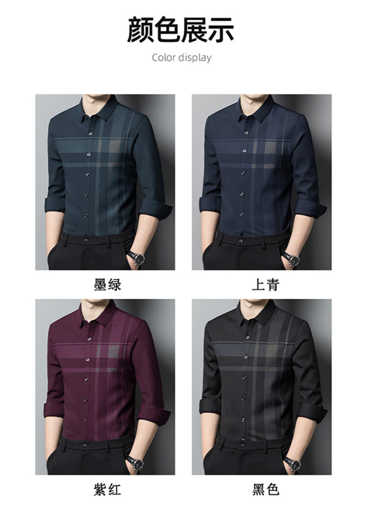 추적없는 긴 소매 셔츠 남자의 봄과 가을 사업 캐주얼 중년 남성 셔츠 중년 남성 격자 무늬 셔츠스토어 가기