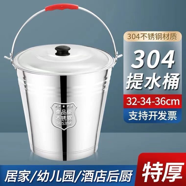 304 비 자기 스테인레스 스틸 워터 버킷 휴대용 대용량 가정용 오일 버킷 뚜껑 물 저장 Extras 두꺼운 호텔 Elegy스토어 가기