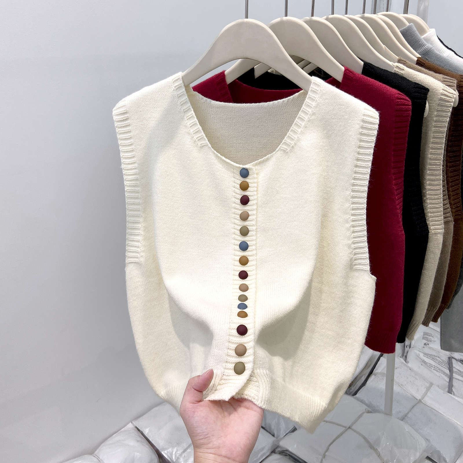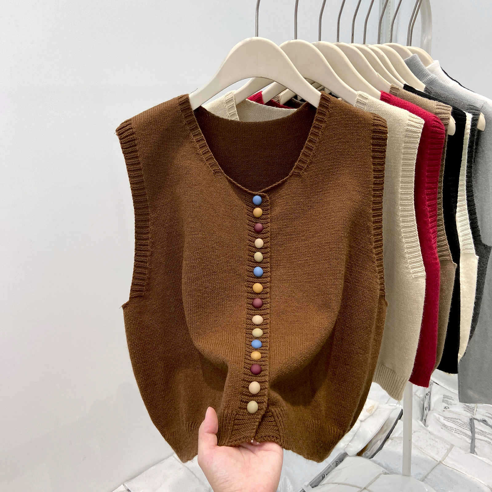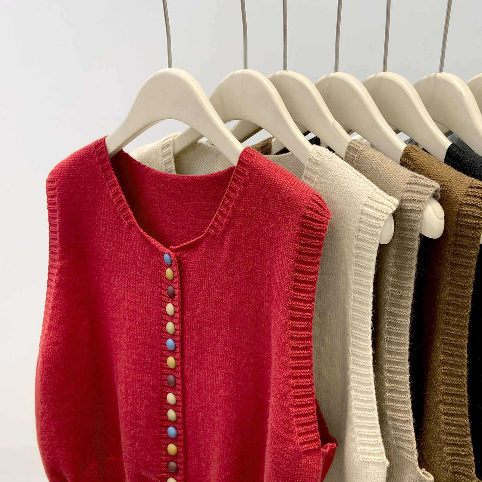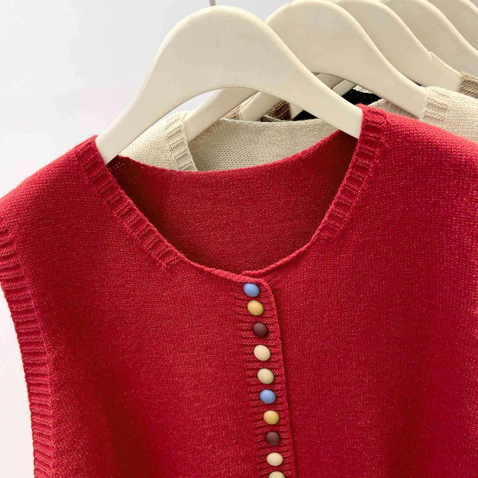 한국 레인보우 싱글 브레스트 니트 조끼 여성 스웨터 2025 봄 틈새 레이어드 카디건 앙고라 레드 조끼