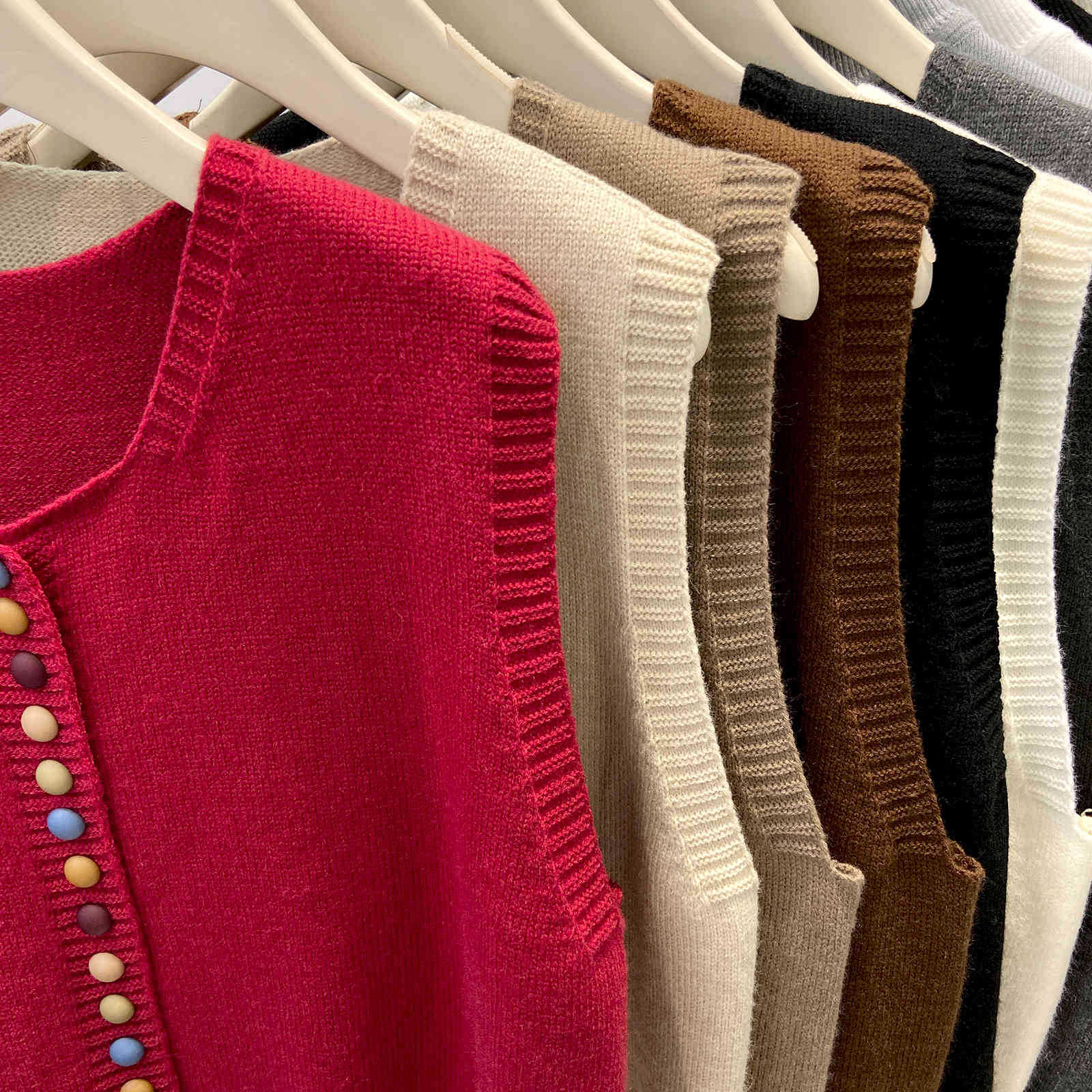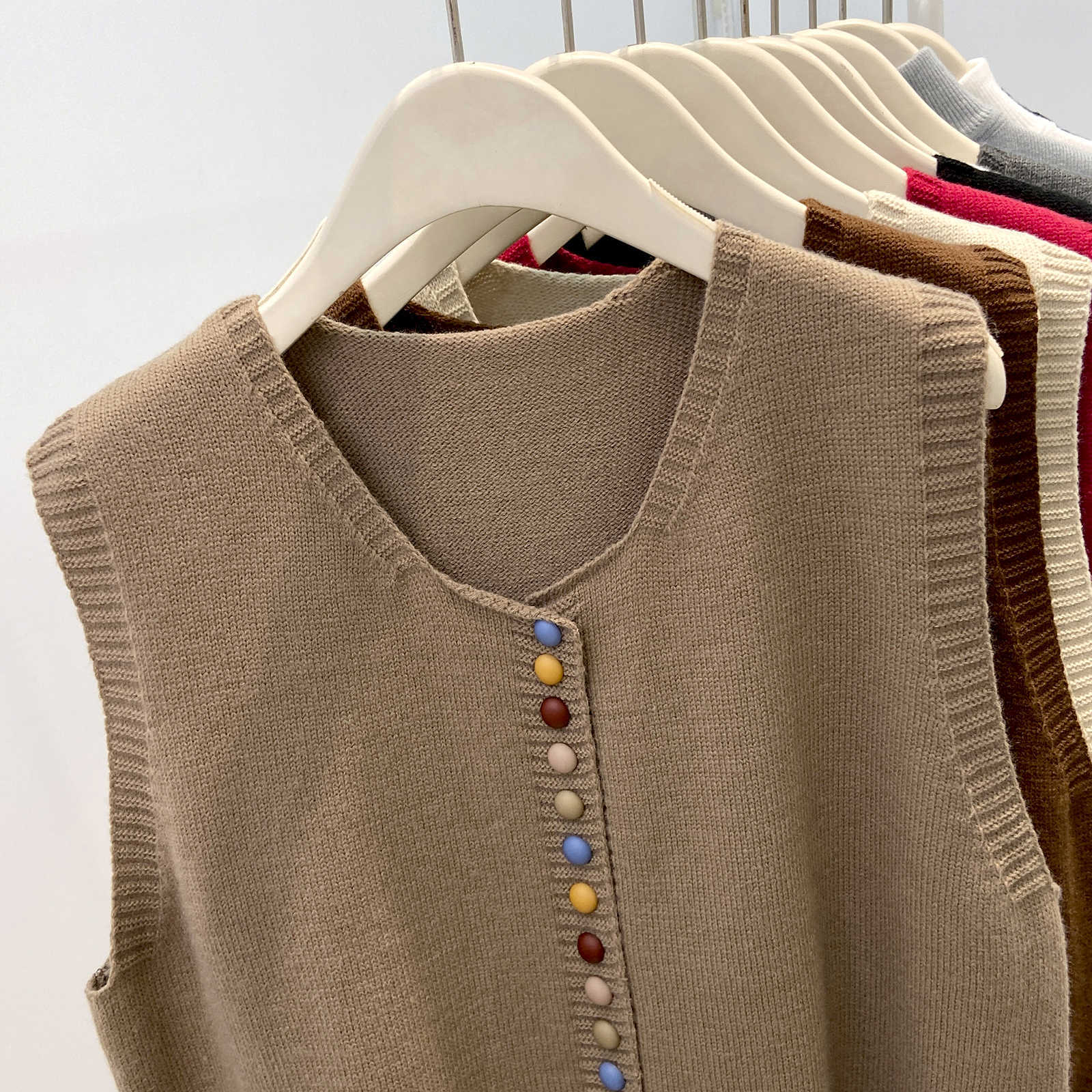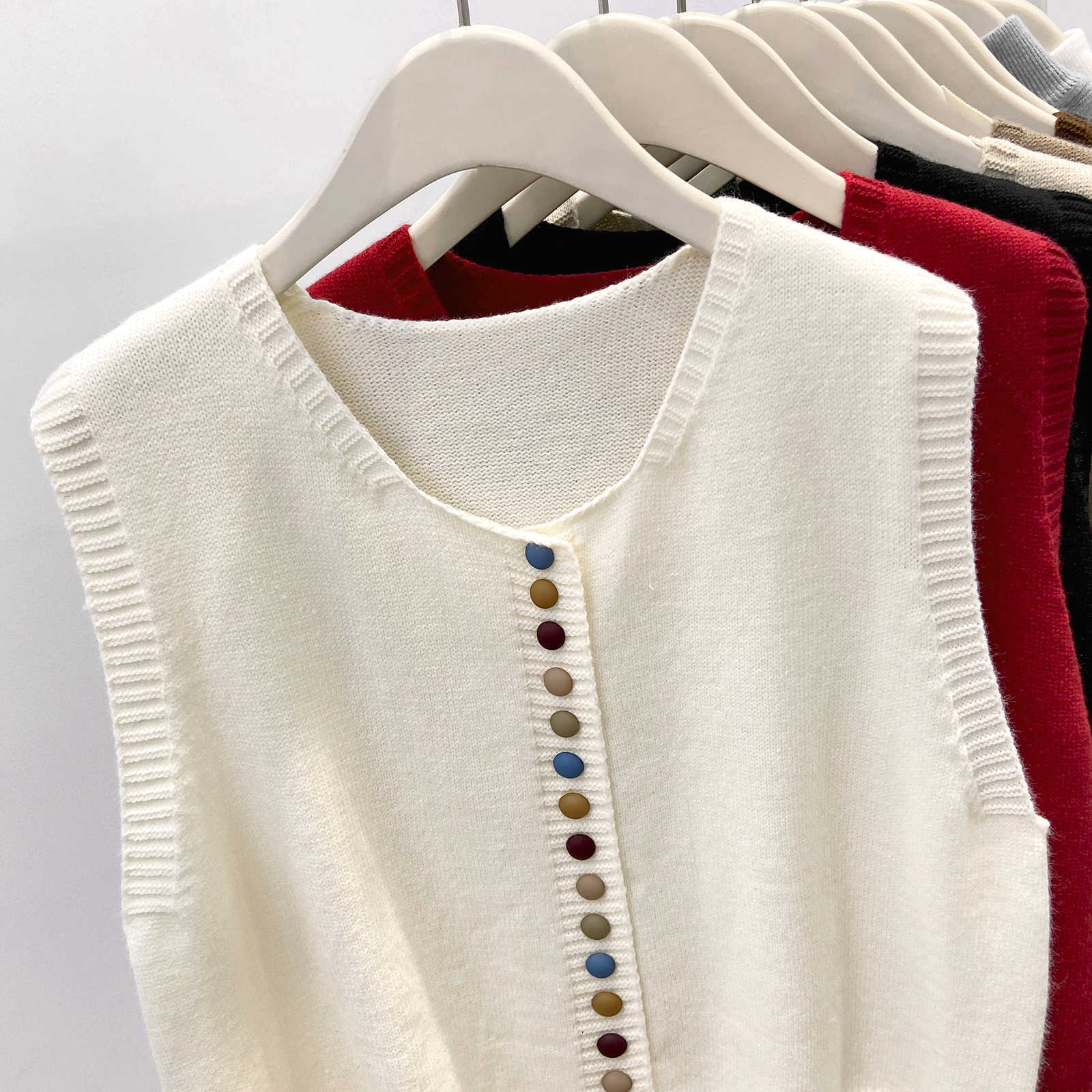 한국 레인보우 싱글 브레스트 니트 조끼 여성 스웨터 2025 봄 틈새 레이어드 카디건 앙고라 레드 조끼스토어 가기
